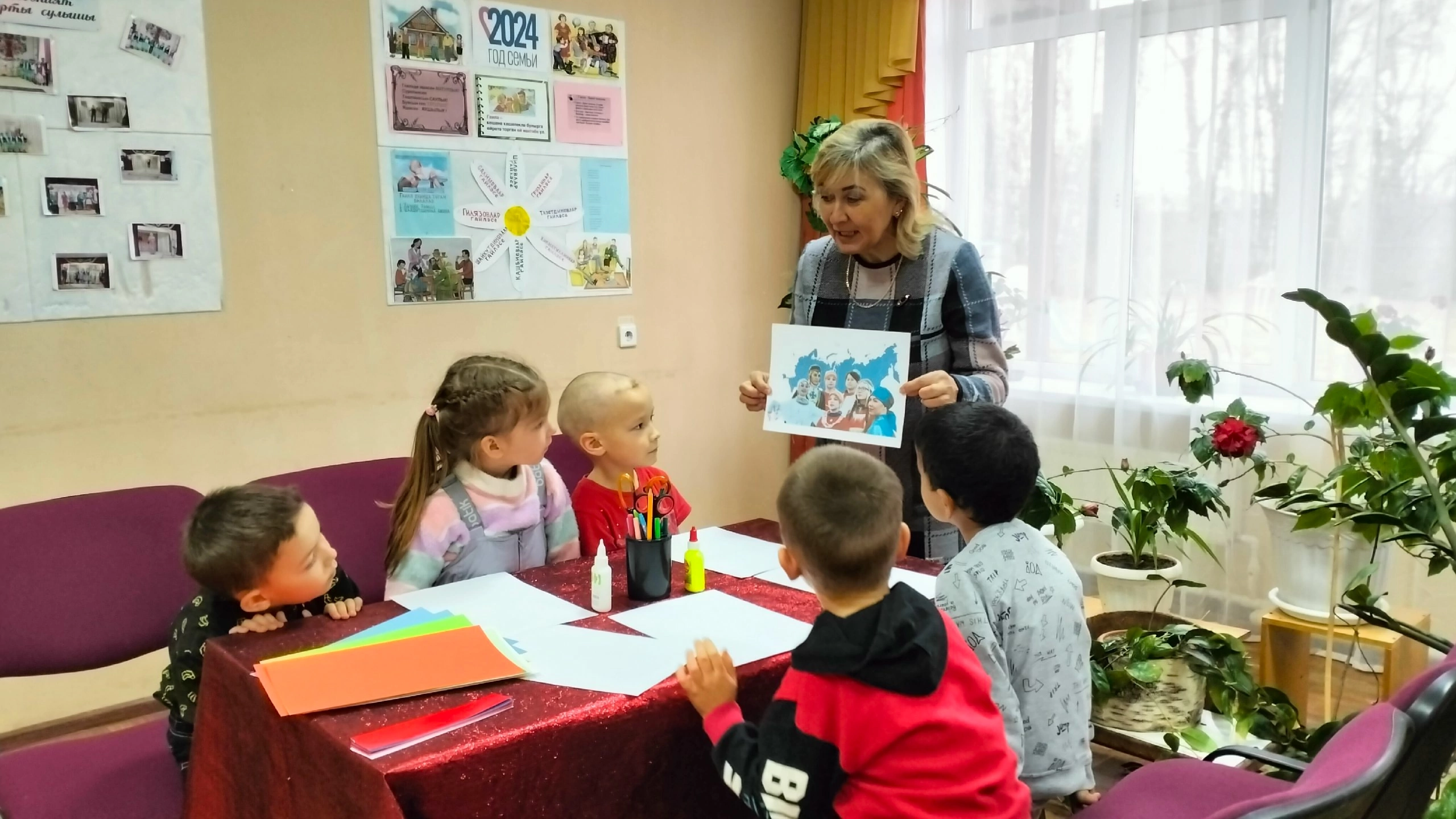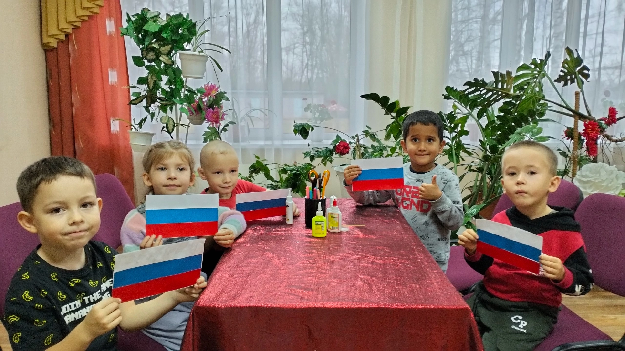 Сегодня в Доме культуры состоялся литературный час "Великая Россия - в единстве её сила" с воспитанниками детского сада. (воспитатель Хасанянова Г. М.) В ходе мероприятия дети познакомились с историей праздника, узнали об историческом прошлом России, закрепили знания о государственных символах. Ребята познакомились с народами населяющими нашу страну, изготовили из цветной бумаги флаг России, слушали стихи о дружбе народов.