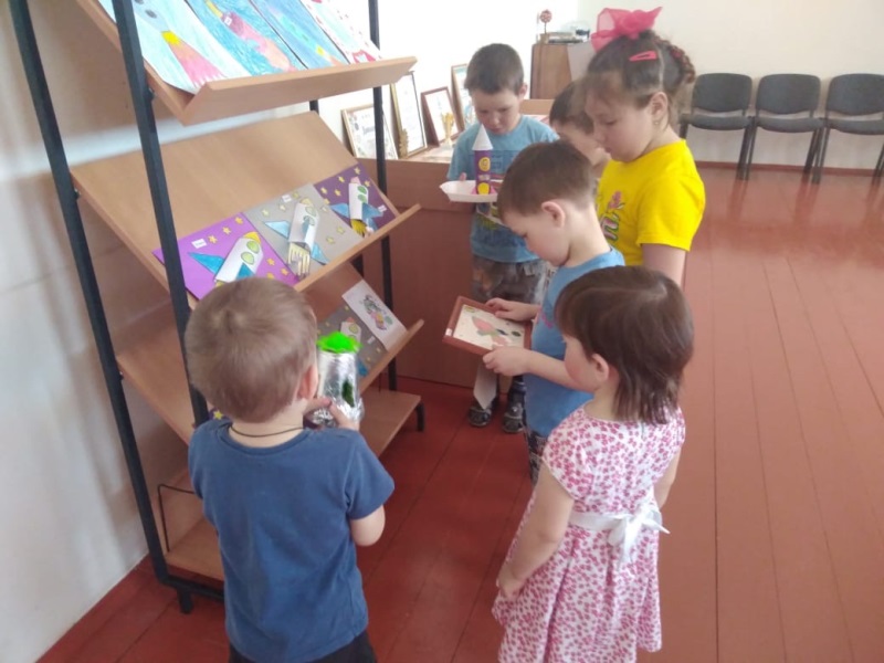 Бәйгедә мәктәпкәчә яшьтәге балалар бик теләп катнаштылар. Тәрбиячеләре космос,бәйрәм тарихы турында әңгәмә уздыргач , алар тырышып эшкә керештеләр. Авыл клубы залында иҗади эшләрдән күргәзмә оештырылды. Бәйгедә катнашучылар Мактау грамотасына һәм баллы призларга лаек булдылар.Ә яшүсмерләргә “Гагарин исемле йолдыз “ дип исемләнгән документаль фильм күрсәтелде.Соңыннан караган материал буенча фикер алыштылар.