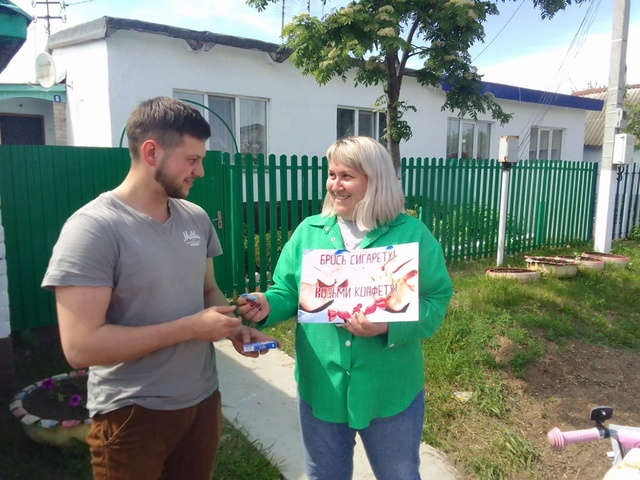 В рамках акции раздавались информационные буклеты. Сотрудники СДК и библиотеки провели интерактив с прохожими конкурс «Проверка легких». Кто быстрее надует и лопнет шарик, тот большой молодец и в конце, конечно же, получит конфету. «Конфета на сигарету», например, сломать сигарету в обмен на конфету.
