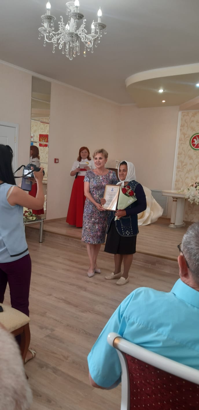 Бу көнне юбилярларны гаилә тормышында хөрмәтләделәр. аларның берсе Иске Гришкино авылыннан Галкиннар гаиләсе, алар бергә 50 ел яшәгәннәр. Аларны Менделеевск районы башлыгы урынбасары Л.К. Галеева Рәхмәт хаты һәм кыйммәтле бүләк белән бүләкләде.
