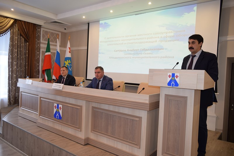 В зале администрации района прошло заседание координационного совета по урегулированию ситуации на алкогольном рынке. В заседании приняли участие глава района Валерий Чершинцев, руководитель госалкогольинспекции РТ Жаудат Ахметханов, главы сельских поселений, представители прокуратуры, полиции. Открыл заседание заместитель главы района Альберт Саттаров. В своем выступлении он отметил, что реализация алкогольной продукции в Менделеевском районе за 2017 год составляет 34,9 тысяч литров, за аналогичный период 2016 года было реализовано 32,4 тысяч литров. Но несмотря на это, Менделеевский район занимает лишь 37 место по реализации алкогольной продукции по республике. Основные факторы понижающие рейтинг района – это факты отравления нелегальной алкогольной продукцией, недобросовестные продавцы торгующие «фанфуриками» и преступления совершенные в состоянии алкогольного опьянения. При составлении рейтинга учитываются и эти показатели.