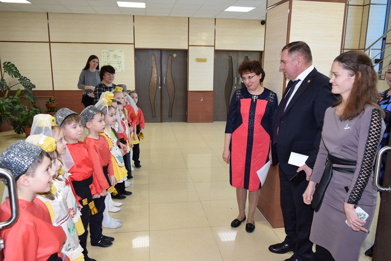 Гостей встречали «живым коридором» представители в национальных костюмах. Мероприятие началось композицией «Я, ты, он, она».