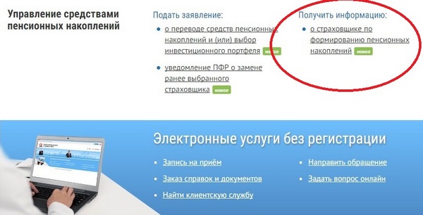 Войдя в Личный кабинет, в разделе «Управление средствами пенсионных накоплений» нужно выбрать «Получить информацию о текущем страховщике».