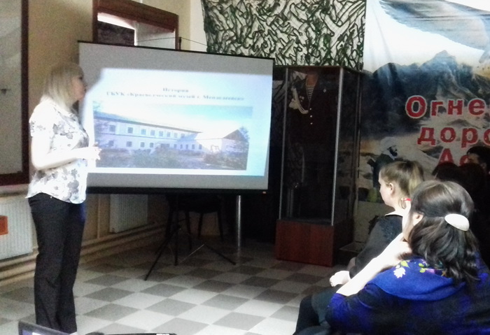 В дни акции "Музейная весна Татарстана - 2018" учащиеся 8 класса школы № 1 прослушали лекции об "истории краеведческого музея". Старший научный сотрудник музея Боднарь Ольга рассказала о первых зарождениях краеведческого движения в Менделеевске, о первых выставках и экспозициях, о сборах информации.