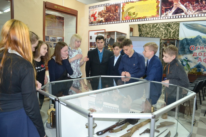 На примере "Зала боевой славы", ученики разобрали каким образом отталкиваясь от одного музейного предмета создать экспозицию и экскурсию.