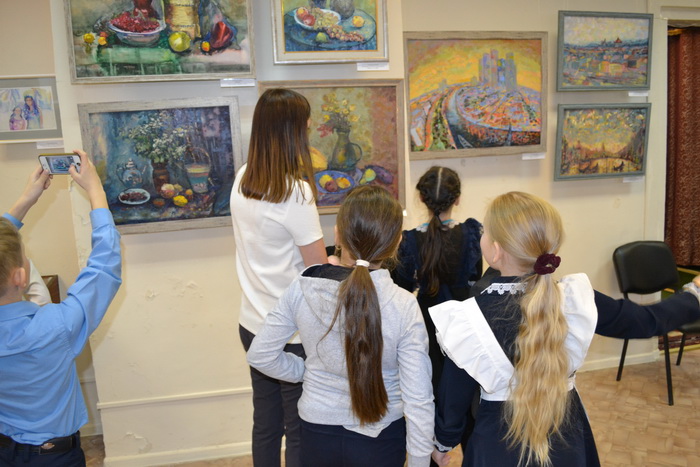С одной из участниц, Смолиной Дарьей, пообщались учащиеся СОШ №4. Ребята задавали художнику вопросы, так как многие ребята занимаются в художественном кружке.