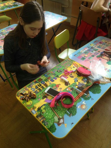 23 апреля 2018 года прошёл Мастер- класс по изготовлению броши из Георгиевской ленты, посвящённый Великой Отечественной войне. Мастер- класс прошёл для кружковцев двух объединений: " Театр Моды" и " Интерьерная кукла", под руководством Аникиной Алёны Николаевны. Кружковцы сделали броши не только для себя, но и для своих родных! Принесли разноцветные ленты, бусины, цветочки. Полет фантазий был неограничен. Каждая брошь получилась эксклюзивной! Девочки делились своими идеями и материалами. Мастер классом все остались довольны! На парад все пойдут со своими брошками!