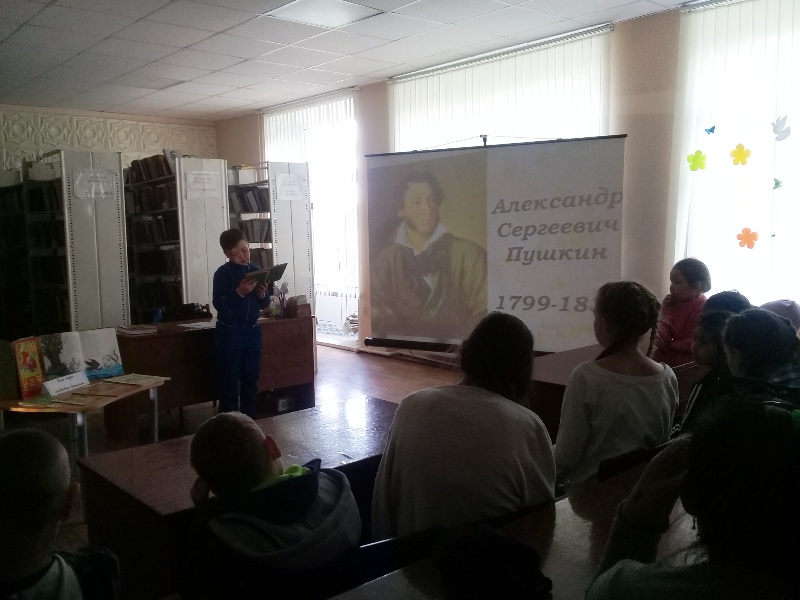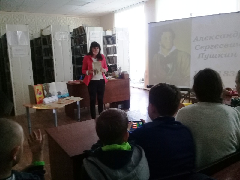 Библиотекарь познакомила ребят с биографией и творчеством А.С.Пушкина, показала презентацию. В ходе мероприятия вспомнили сказки, стихи Пушкина и прочитали вслух его замечательные произведения. Ребята с удовольствием отвечали на вопросы видеовикторины, решали кроссворд «Сказочные имена», показав насколько хорошо знают сказки любимого поэта. В конце мероприятия посмотрели мультфильм «Сказка о рыбке и рыбаке».