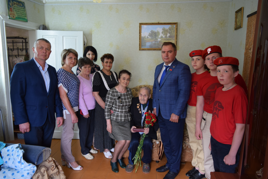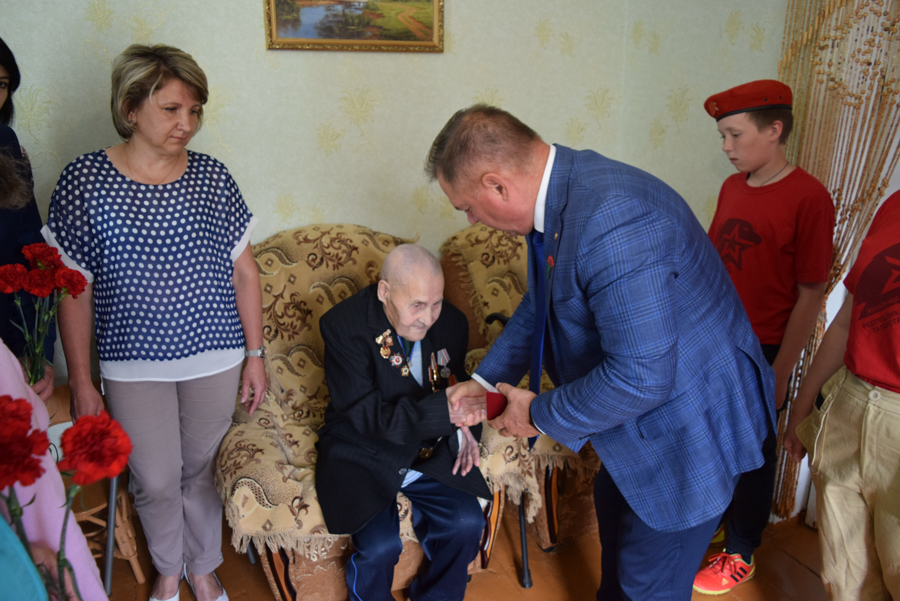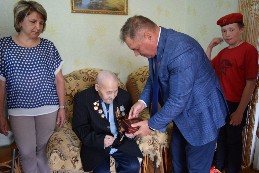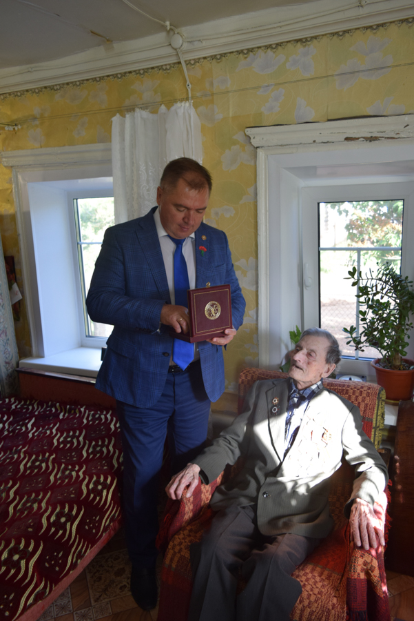Валерий Сергеевич адресовал тёплые поздравления ветеранам, пожелал крепкого здоровья, благополучия, вручил открытку и главный подарок ̶ медаль «За доблестный труд».