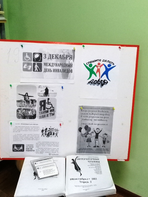 4 декабря в рамках декады инвалидов библиотекарь Псеевской сельской библдиотеки совместно с работниками культуры навестили на дому инвалида 3 группы Шиапова Рафаэля Ш. Пожелали ему и его супруге здоровья, семейного счастья. В библиотеке была оформлена выставка-стенд «Спешите делать добро».