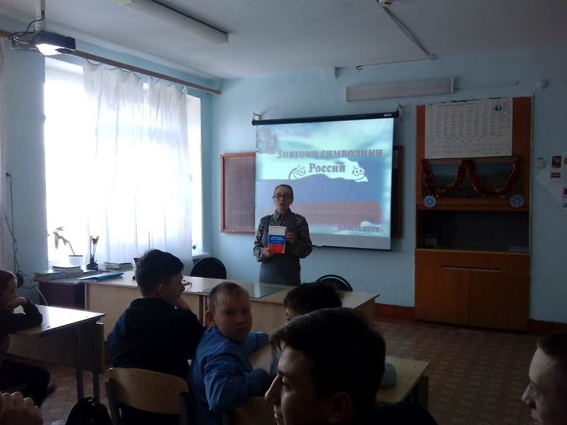 12 декабря в Камаевской школе проведен час информации «Символы Российской государственности», посвященный Дню Конституции Российской Федерации. Цель мероприятия воспитание любви и уважения к родной стране, к ее символам, воспитание патриотического духа. Библиотекарь Галимуллина Г.М. рассказала присутствующим об истории праздника, о государственных символах России (флаге, гербе и гимне). Потом ученики участвовали в игре «Знатоки символики России».