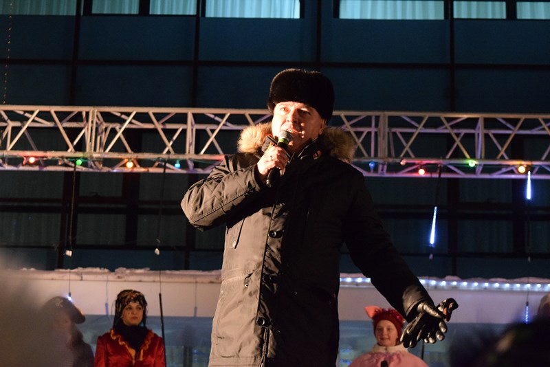 Открылся праздник поздравлением главы района Валерия Чершинцева. Со сцены около главной менделеевской ёлки он обратился к гостям праздника. Он отметил, что новшеством площади стала 15-тиметровая зелёная красавица, которую украсили на славу.