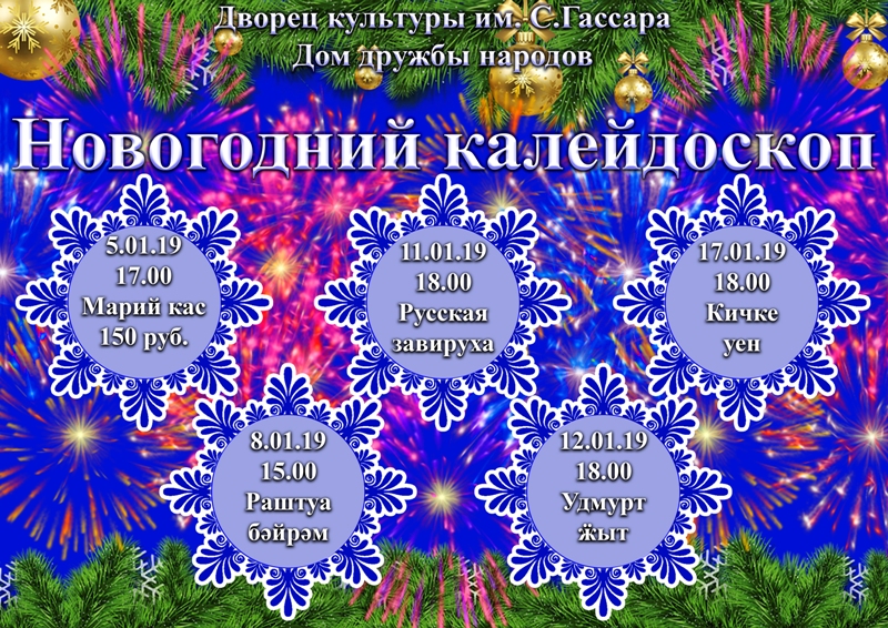 Дворец Культуры им.С.Гассара и Дом дружбы народов приглашают на Новогодний калейдоскоп.