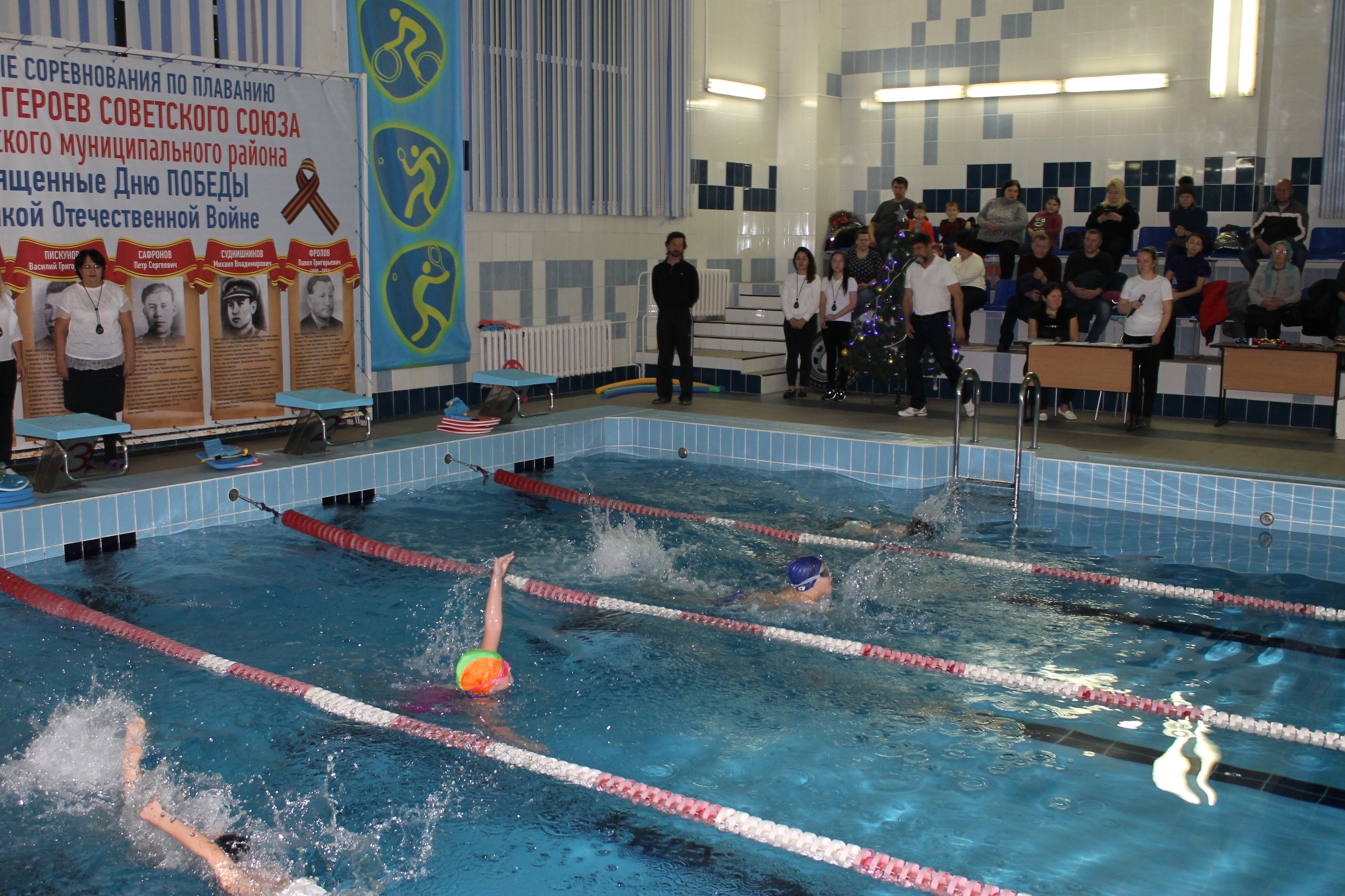 Заключительным этапом соревнований стала командная эстафета «Наряди новогоднюю елочку», в которой каждый тренер представил команду из четырех человек. Дети ныряли в воду с елочной игрушкой, проплывали с ней 25 метров.