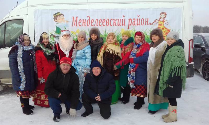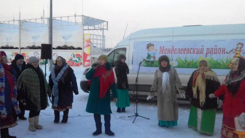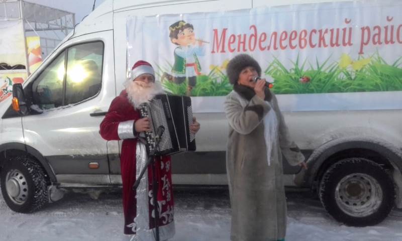 Ярмарка прошла 27 декабря. Работники культуры Менделеевского района представили зрителям на свежем воздухе Новогоднюю концертную программу.