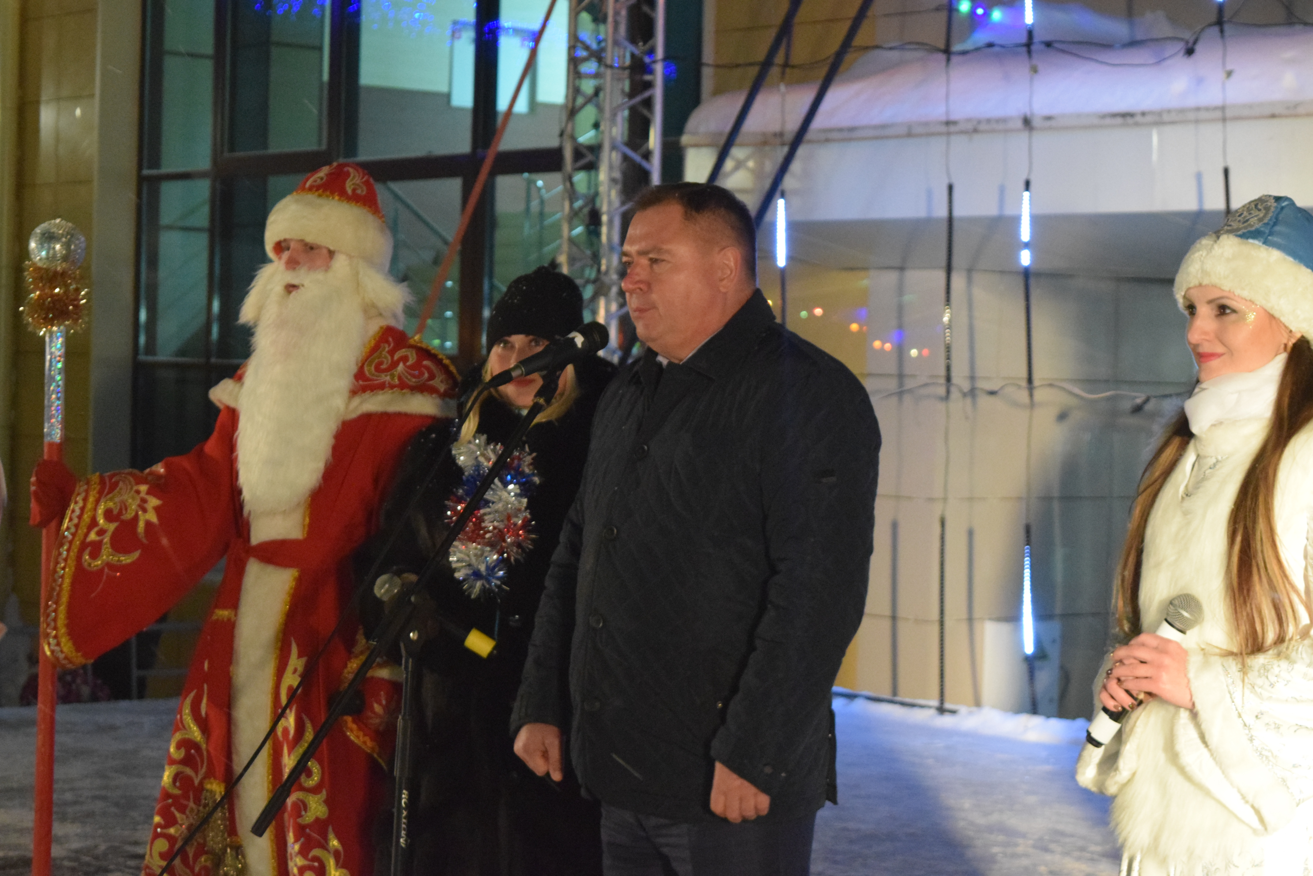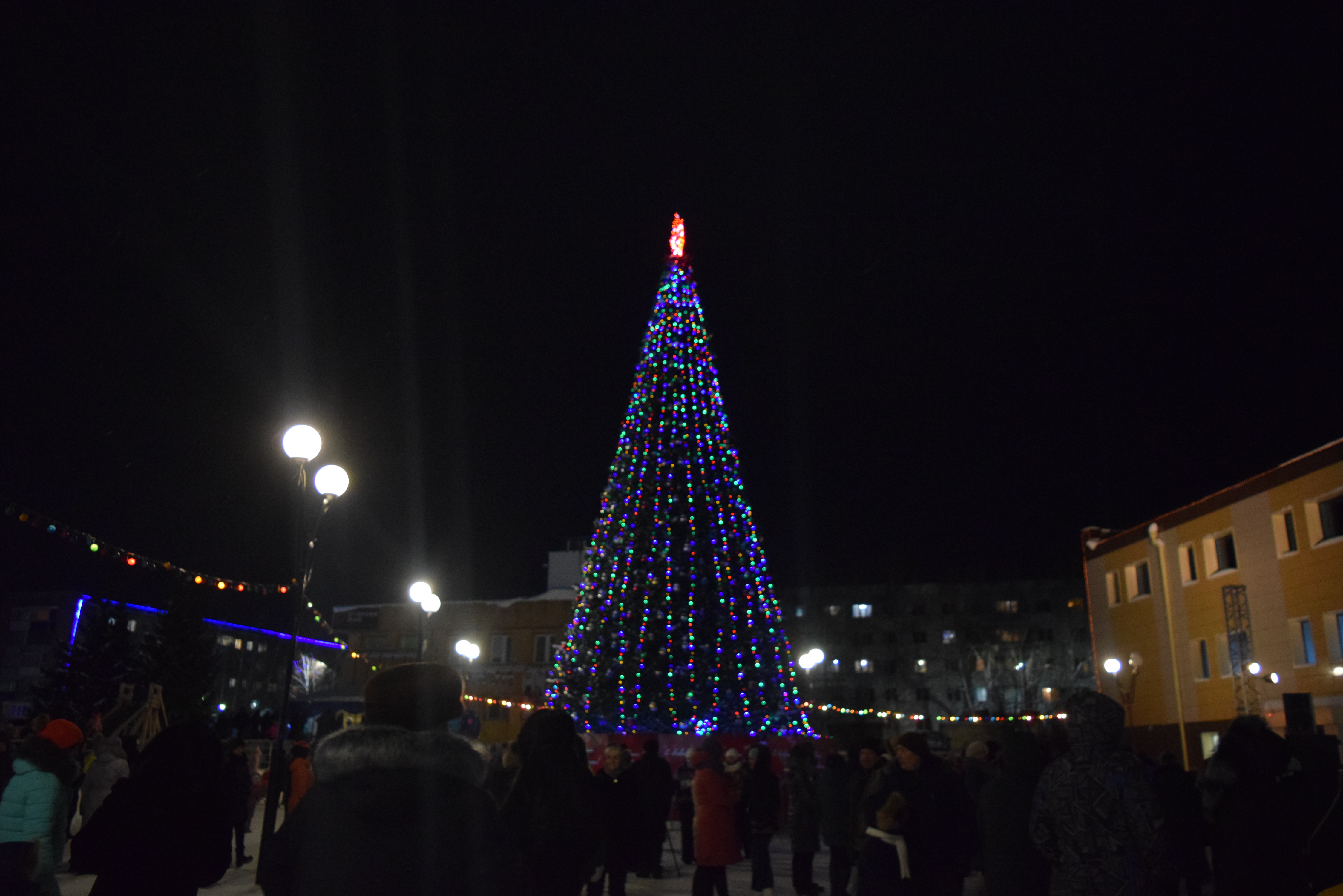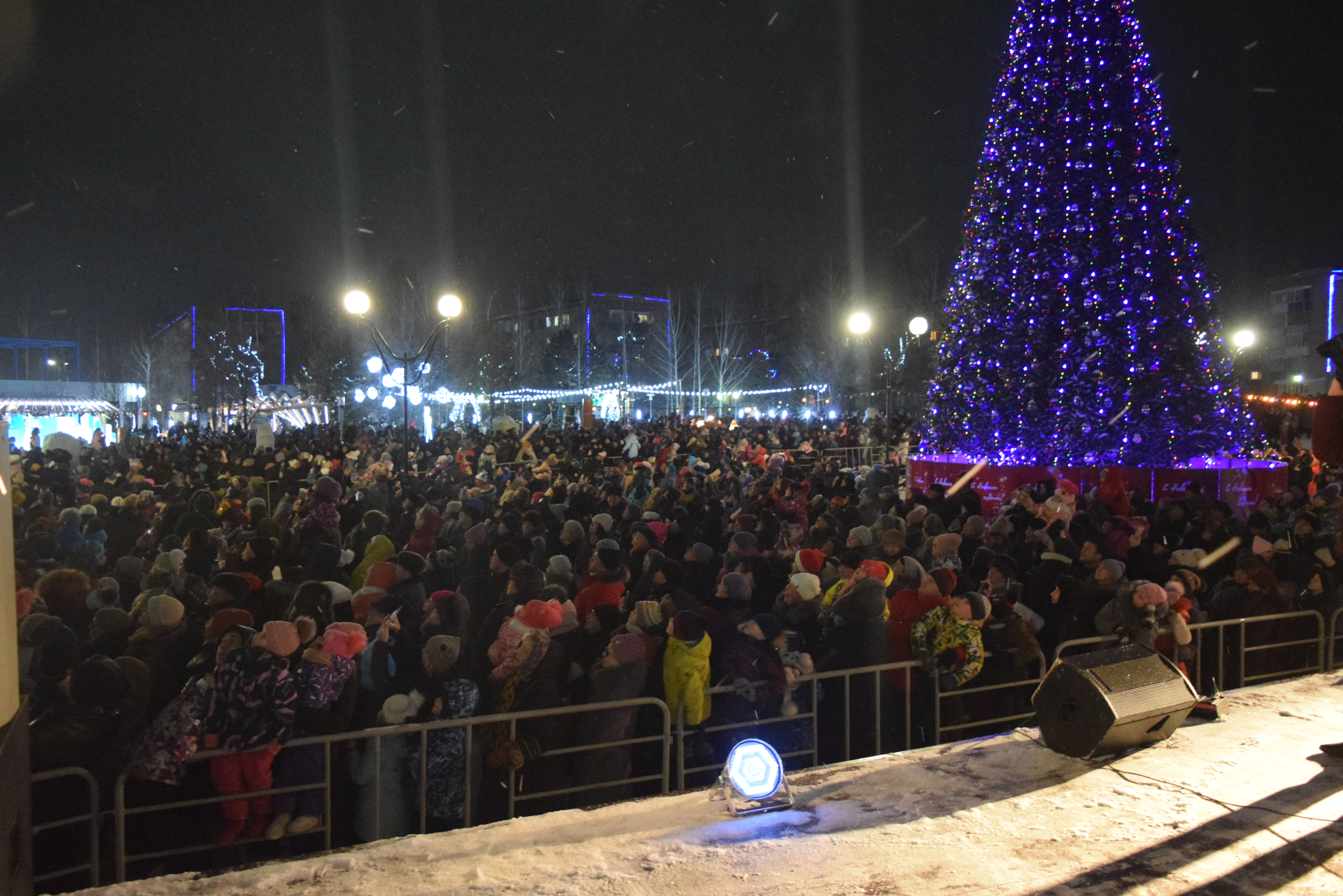 У центральной елки собрались все те, кто в столь поздний час не хотел оставаться дома. Праздничные мероприятия начались с театрализованного представления. Для местных жителей выступили музыкальные и танцевальные ансамбли, настроение поднимали сказочные персонажи.