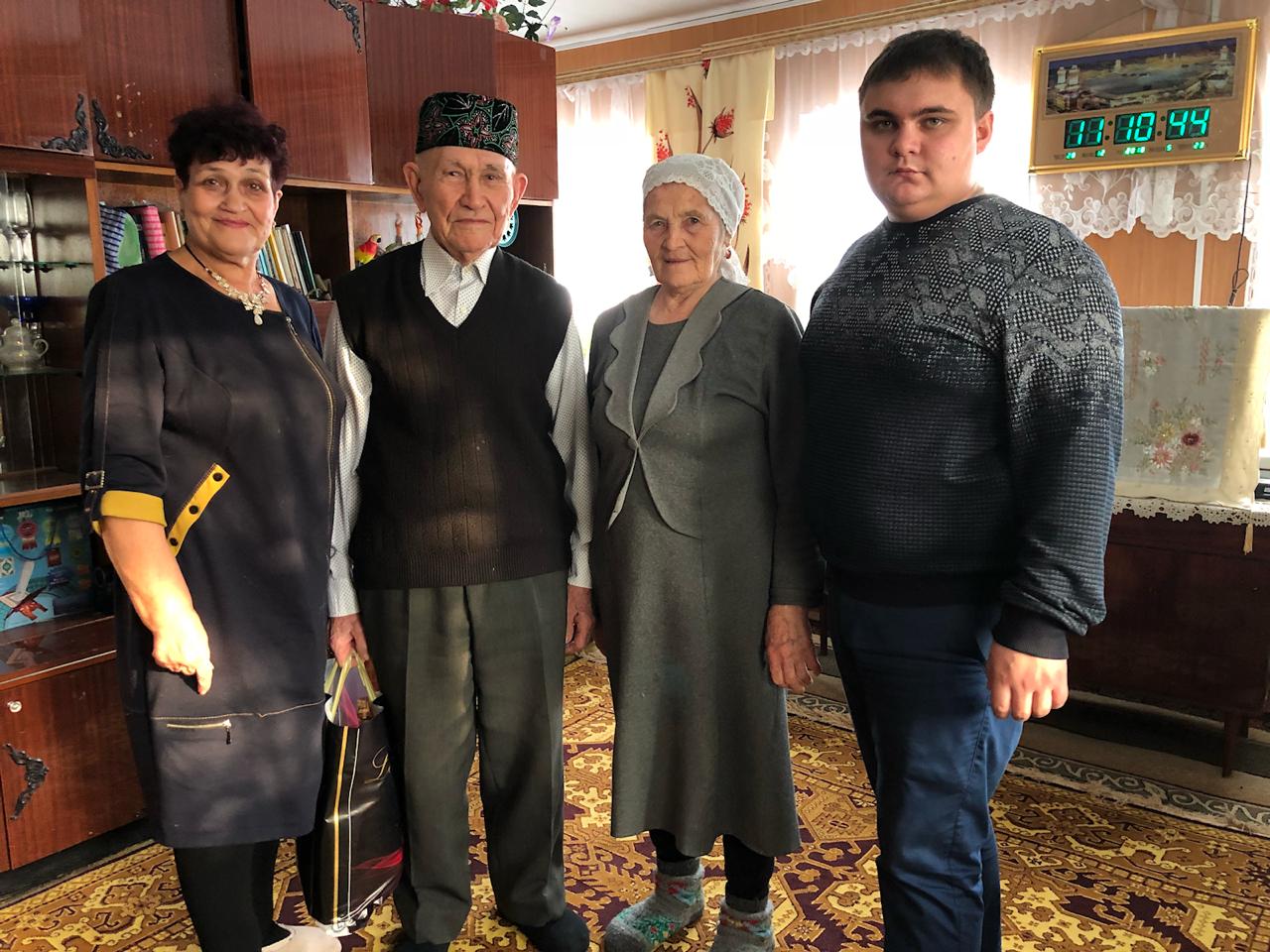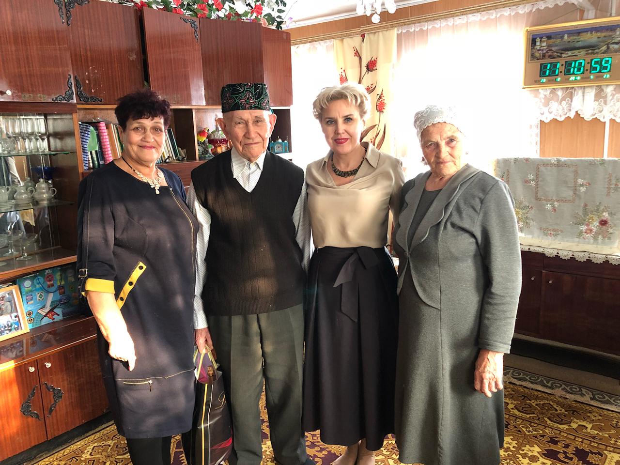 Заместитель главы района Лейсан Галеева, председатель Совета ветеранов Любовь Сорокина в честь Нового года поздравили ветеранов Великой Отечественной войны с праздником. В ходе встреч вручили ветеранам подарки от имени руководства района. Любовь Ионовна и Лейсан Галеева пообщались с каждым ветераном, поблагодарили их за мирное небо над головой и за счастье победного Мая каждый год.
