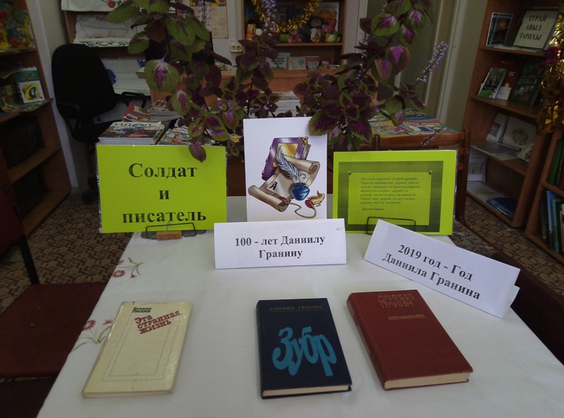 10 января в Тураевской сельской библиотеке было проведено громкое чтение по творчеству Даниила Гранина «Жизнь и сердце, отданные людям», приуроченное к 100-летию со дня рождения писателя.