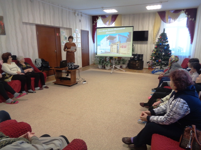 11 января сотрудники Центральной библиотеки провели в Центре социальной помощи «Саулык» познавательный час «Мастер пейзажа», посвящённый дню рождения И.И.Шишкина – русского художника -пейзажиста.