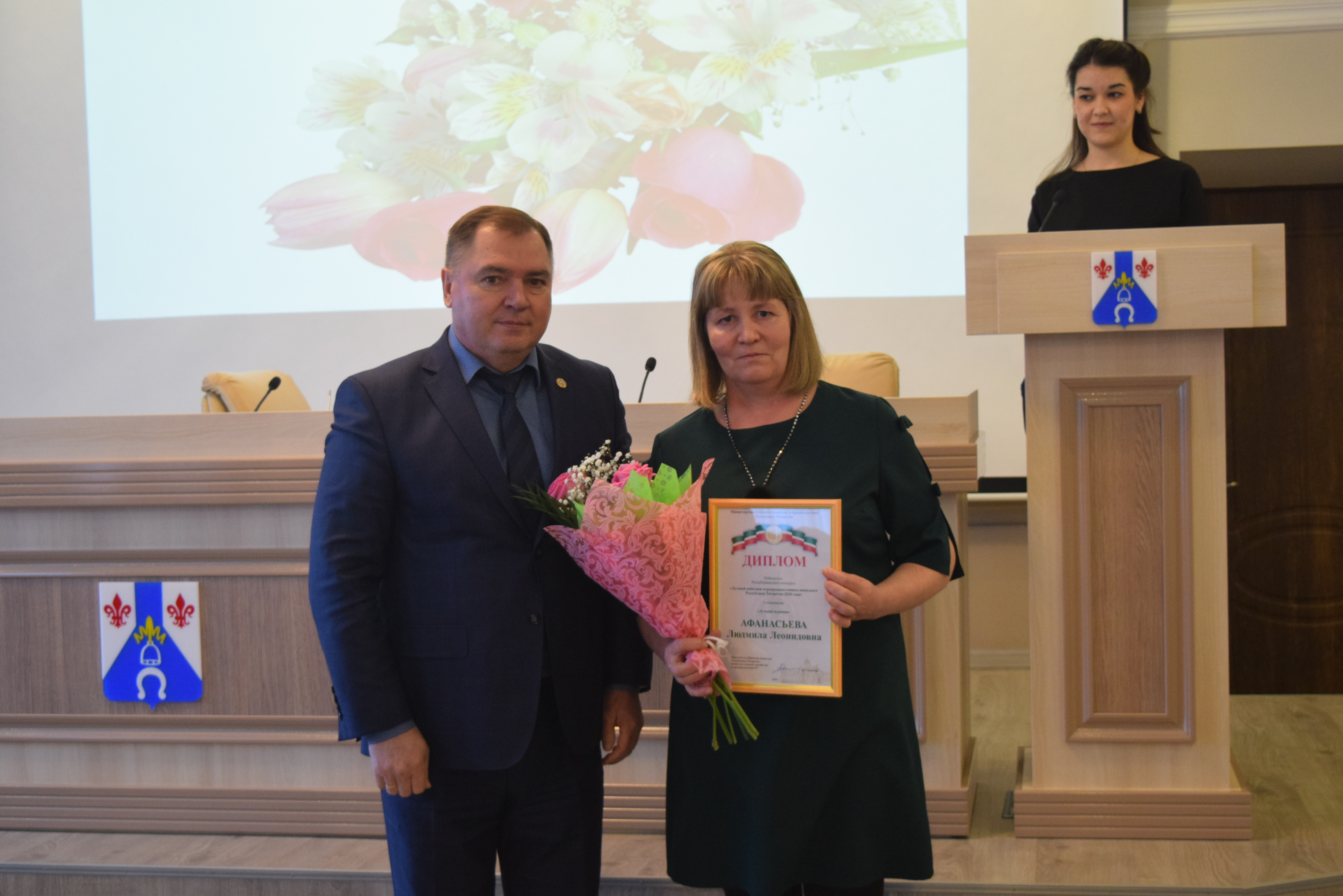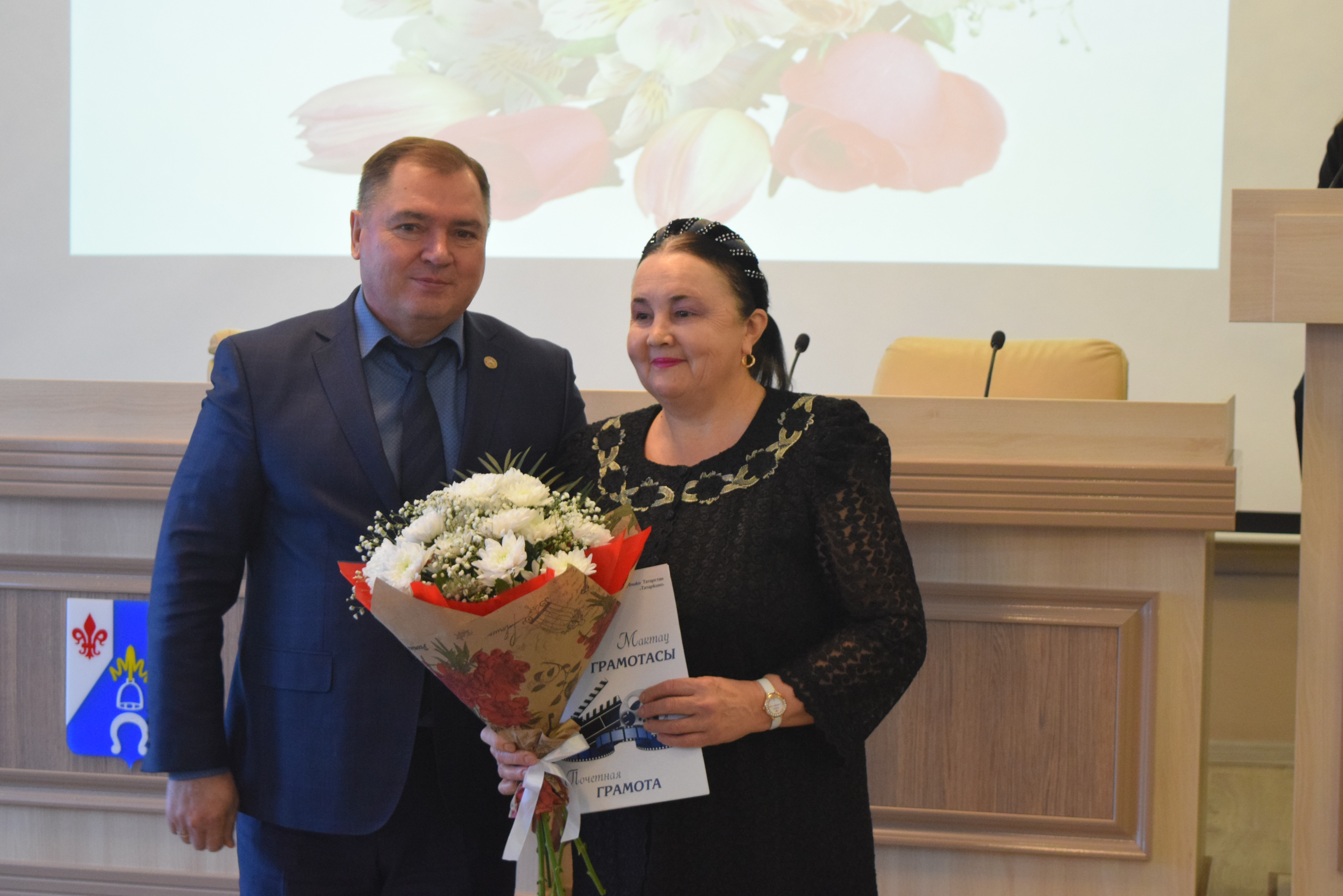 Почетной грамотой Главы района за многолетний добросовестный труд, большой вклад в развитие культуры Менделеевского муниципального района и в связи с юбилеем награждается Мухаметхатипова Фания Шакуровна – директор Тураевского СДК Менделеевского района.