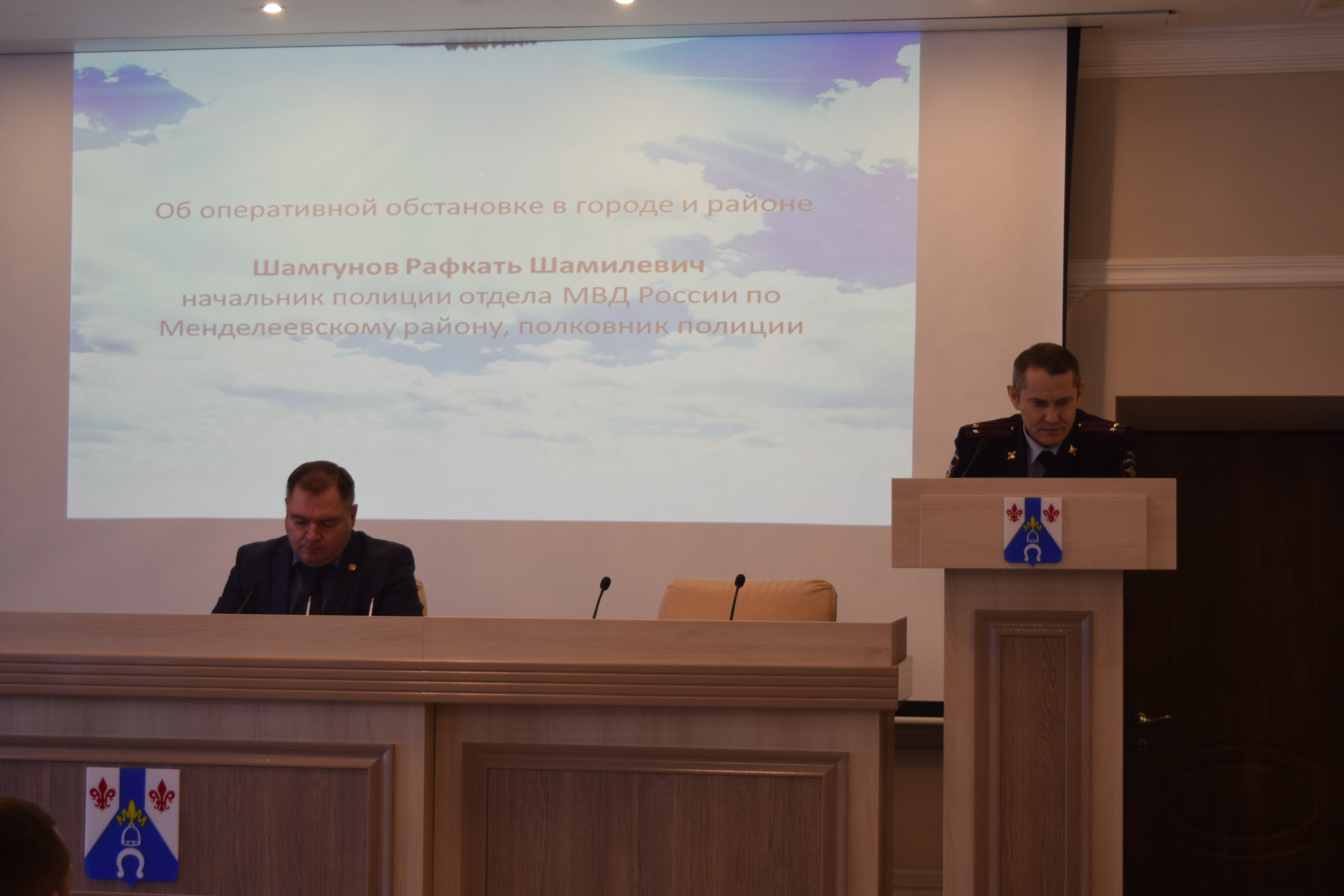 В ходе совещания об оперативной обстановке в городе и районе доложил Шамгунов Рафкать Шамилевич – заместитель начальника отдела – начальник полиции отдела МВД России по Менделеевскому району, подполковник полиции.