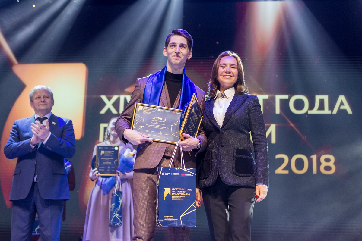 Главный приз за победу в номинации «Гран-при «Студент года Республики Татарстан» – обучение в любом вузе мира (в рамках гранта Правительства Республики Татарстан «Алгарыш», реализуемого Министерством образования и науки Республики Татарстан) получил студент Казанского государственного медицинского университета Андрей Анисимов.