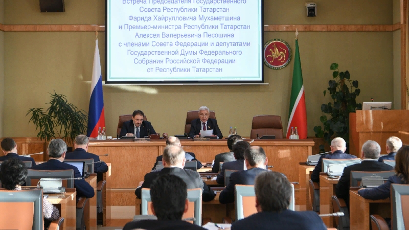 В Правительстве РТ состоялось совещание депутатов Государственной Думы, членов Совета Федерации, руководителей министерств республики при участии Премьер-министра РТ Алексея Песошина и Председателя Государственного Совета РТ Фарида Мухаметшина по итогам работы по привлечению федеральных средств в экономику республики и реализации государственных программ в 2018 году, а также планам на предстоящий период.
