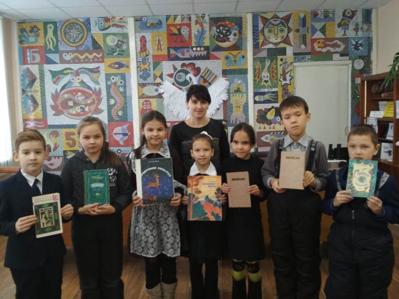 Была оформлена книжная выставка «Уральский сказочник». Библиотекарь Яраханова Рузалия познакомила ребят с биографией и творчеством Бажова. Затем совершили увлекательное путешествие по сказу Павла Петровича Бажова «Серебряное копытце», ребята с удовольствием отвечали на вопросы викторины.