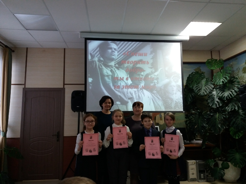 Библиотекарь Сырышева Т.Н. познакомила ребят с удивительной биографией писателя – воина, который прожил короткую, но яркую жизнь и его творчеством. Аркадий Петрович Гайдар – один из самых любимых и популярных писателей нескольких поколений ребят. Его книги учат достойному поведению в любых обстоятельствах, учат дружбе, доброте, верности и тому, что надо честно жить, крепко любить и беречь Родину. Затем участники должны были пройти 7 станций: «Мозговой штурм», «Собери слово», «Чья это вещь», «Своя игра», «Заполни таблицу», «Определения», «Установи очерёдность». Пройдя все испытания, команда узнала девиз первого слёта тимуровцев: «Спеши творить добро – ты в ответе за этот мир». В завершение встречи самым активным были вручены грамоты.