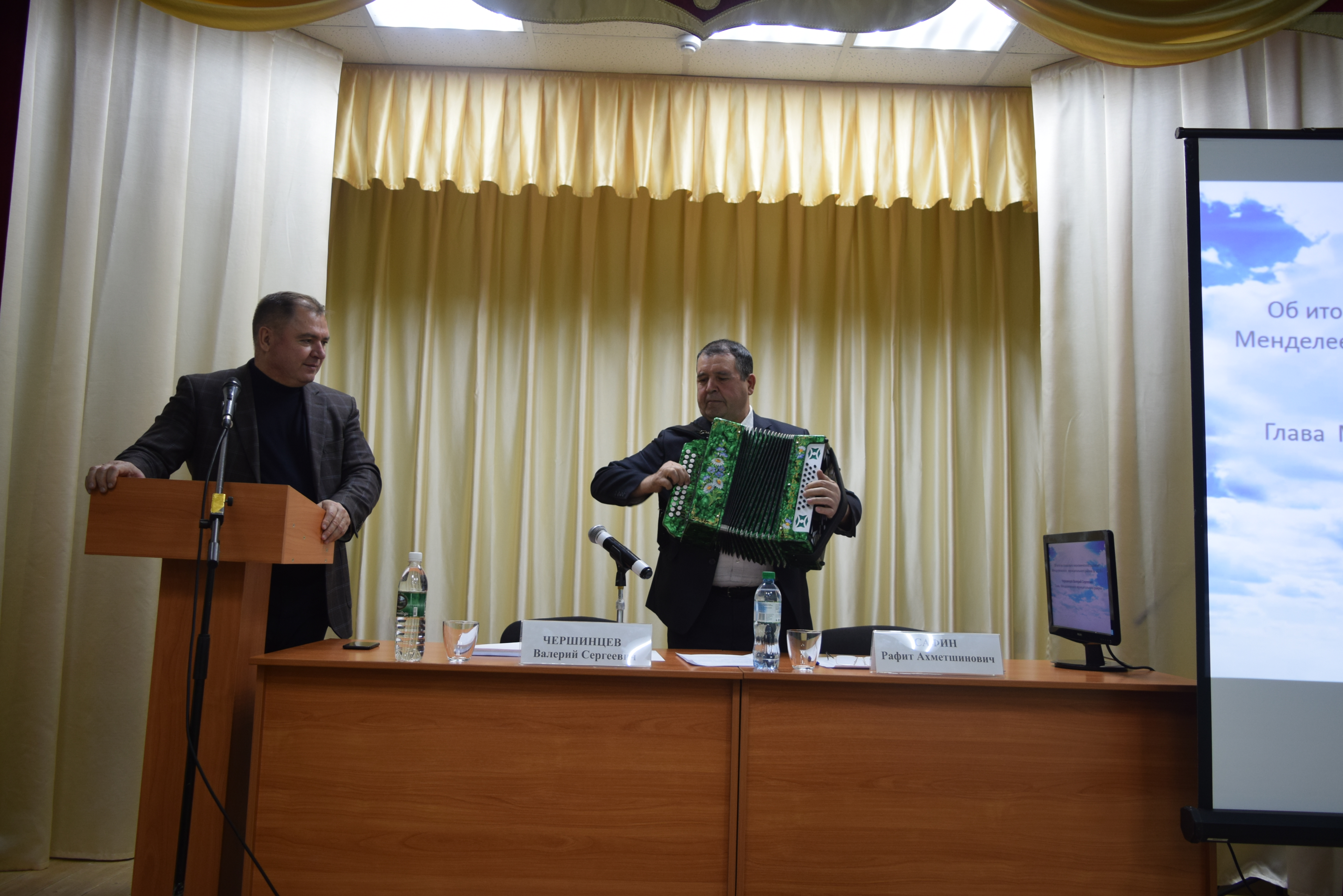 В конце встречи директор ООО "Строитель" Готин Юнес Александрович в подарок клубу преподнес тульскую гармонь.Именно ООО "Строитель" два года тому назад сдал в эксплуатацию клуб..jpg)