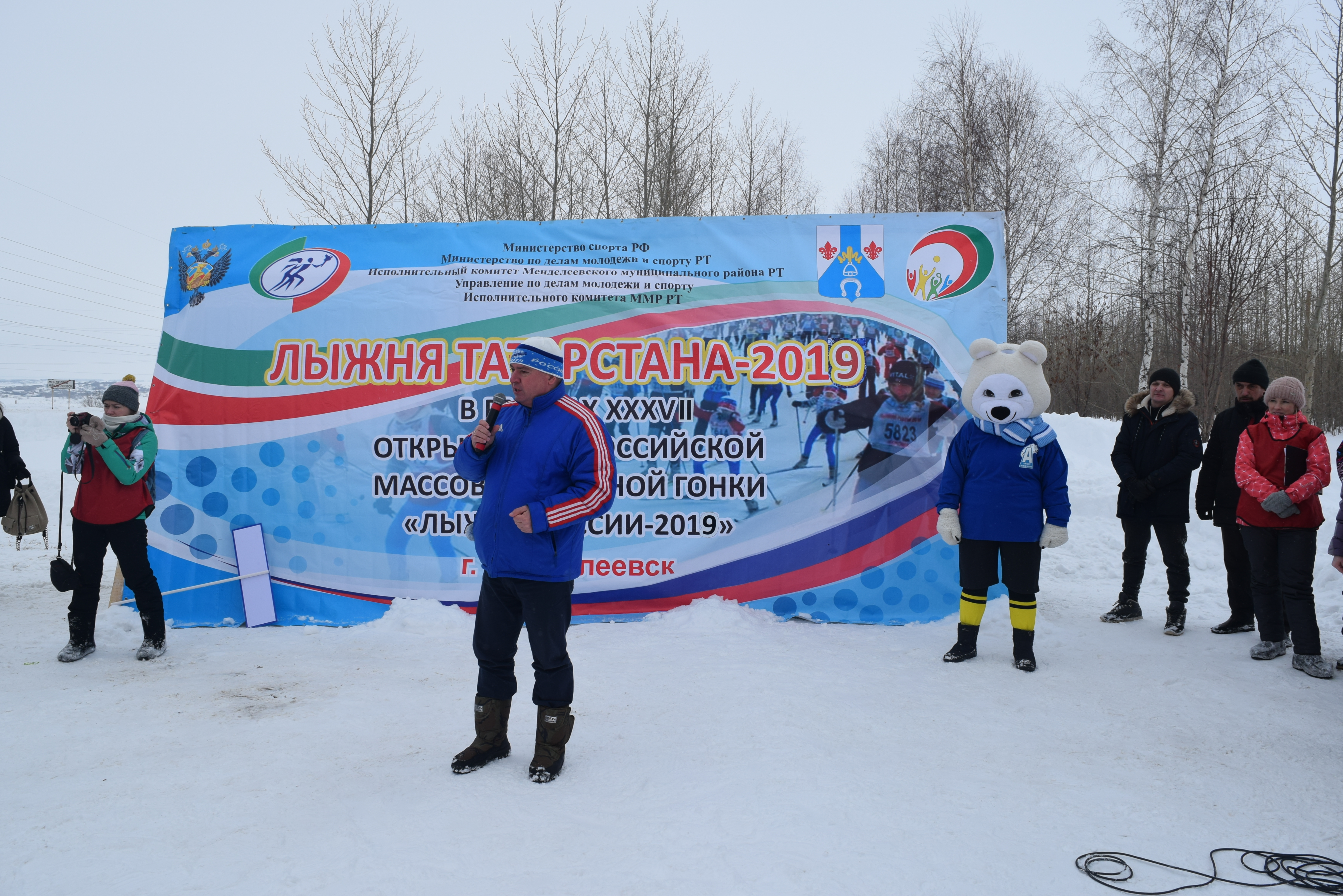 В Менделеевске на лыжной трассе собрались более 1300 менделеевцев. Перед стартом участников поприветствовал глава района Валерий Чершинцев: