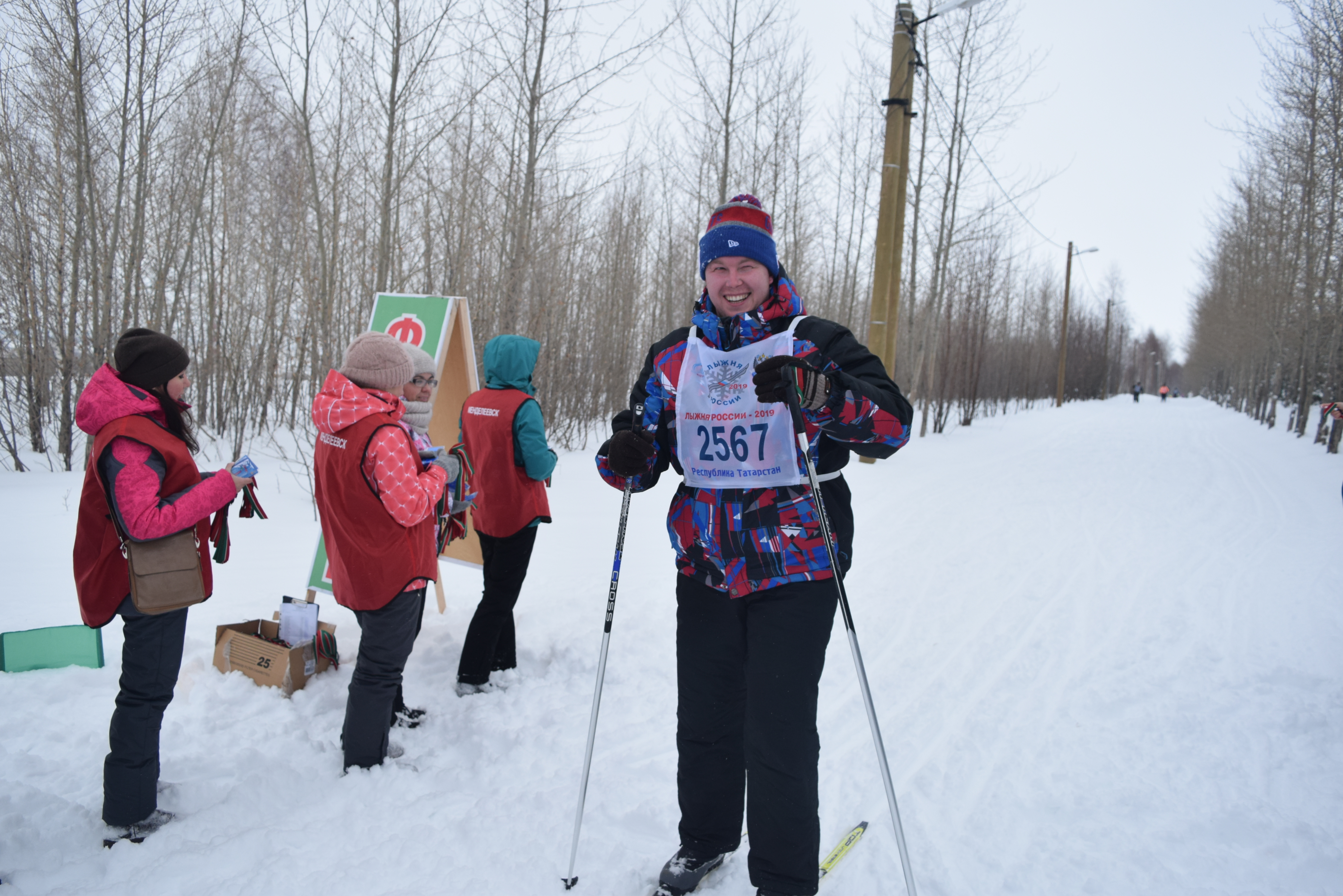 На финише всем участникам дарили фирменные магнитики и ленточки триколор,также менделеевцы могли согреться горячим чаем.