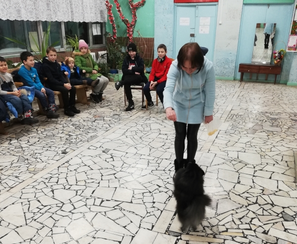 Соня и Тея порадовали тихоновских детишек. Показали выполнение команд, каждый ребёнок мог сфотографироваться с собачками на память.