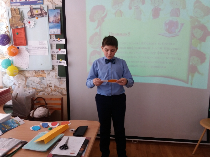 Для учащихся 5«В», 5 «Г»,6 «А», 7 «А» классов школы №1(кл. руковод. Гайнетдинова Г.А., Денисова О.Н., Гимазетдинов М.А., Сабирова Г.Р.) библиотекарь Сырышева Т.Н провела информину «Мой безопасный интернет». Ребята с интересом слушали о том, как не попасть в сети интернет–мошенников, об элементарных правилах вежливого общения и поведения в Сети, о бережном обращении с чужими личными данными. Чтобы лучше закрепить полученные знания ребята сыграли в игру «Цветик-семицветик». Для этого библиотекарь предложила свои высказывания - утверждения, на которые учащиеся должны были выбрать таблички с надписями «СОГЛАСЕН», «НЕ СОГЛАСЕН», «НЕ РЕШИЛ». Участникам, выбравшим неверные таблички, было предложено зачитать правила, которые были написаны на лепестках Цветика –семицветика. Следующее задание заключалось в том, что библиотекарь демонстрирует картинки из известных сказок, а учащиеся формулируют к ним правила безопасного поведения в Интернете. На протяжении всего мероприятия ребята были активны и с удовольствием включались в обсуждения.