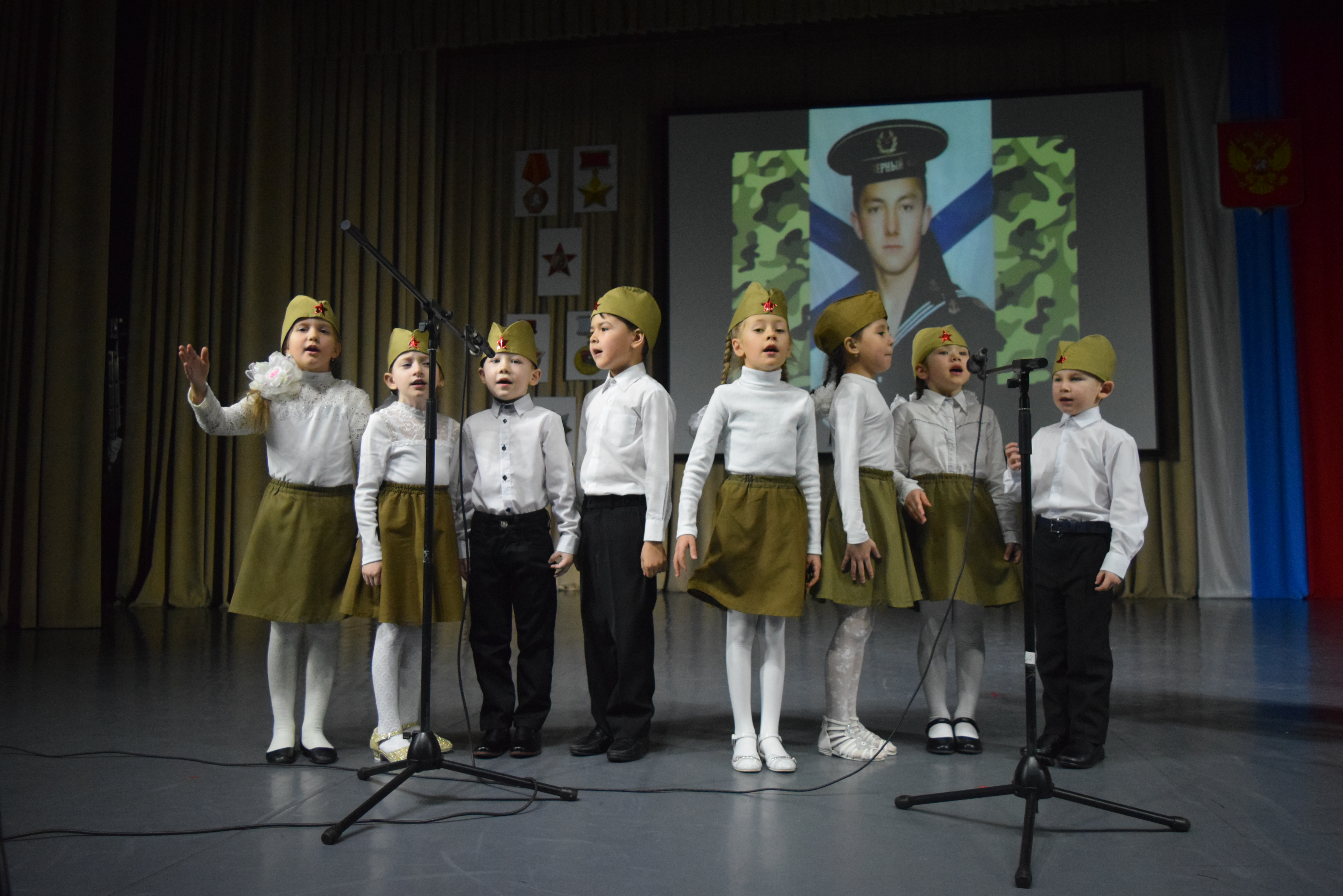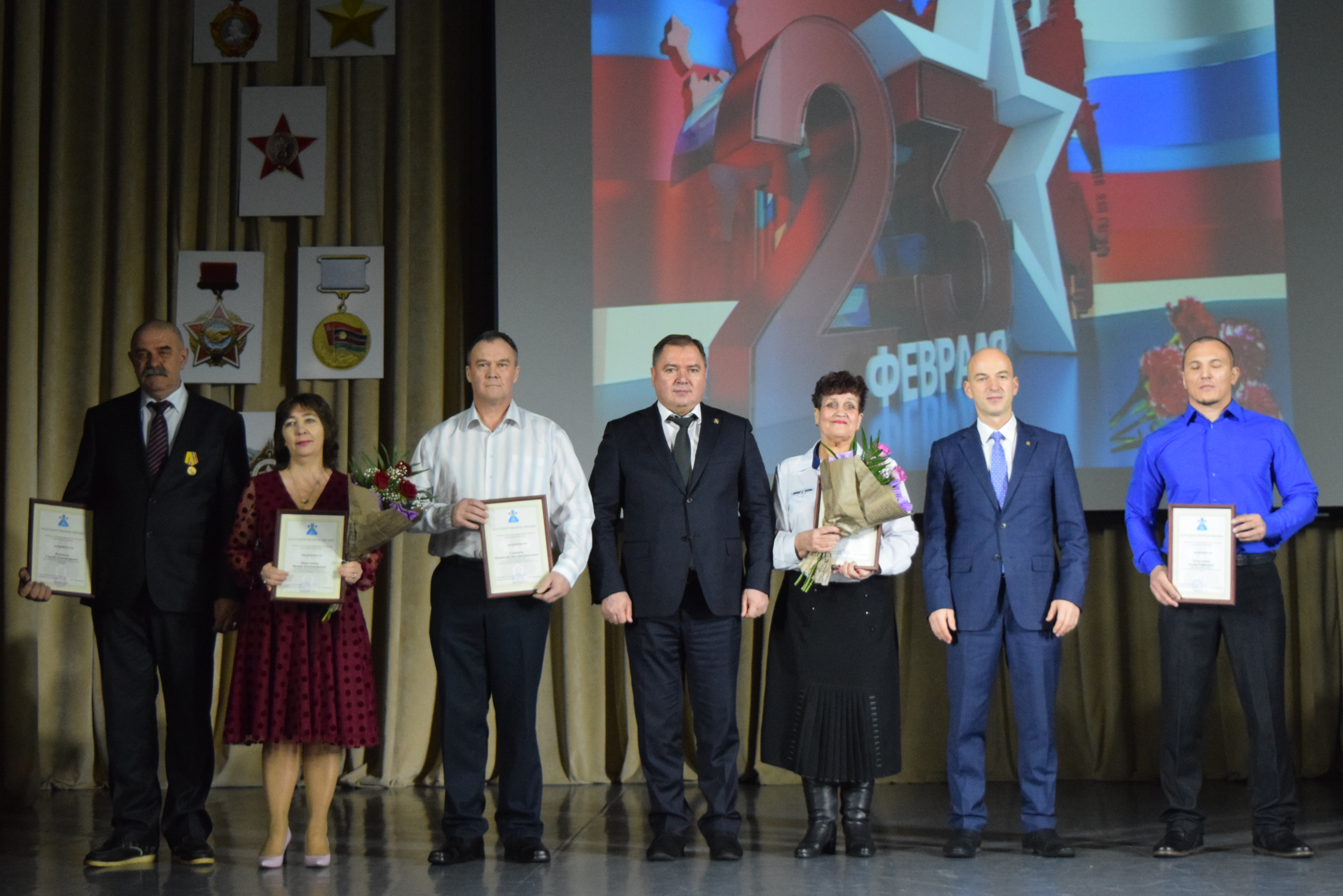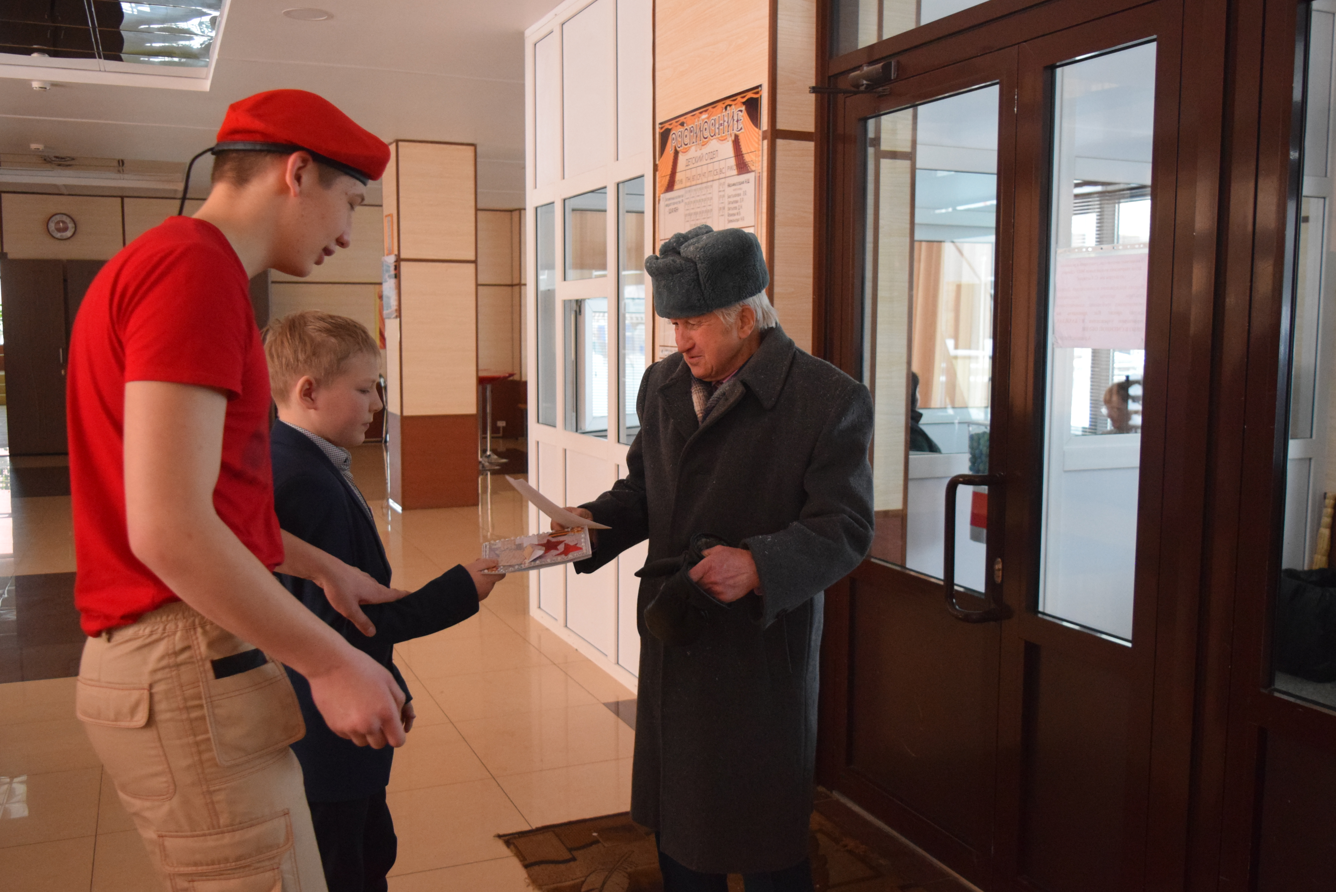 В ДК им. С.Гассара состоялся праздничный концерт,посвященный Дню защитника Отечества.В фойе гостей встречали ученики 1 школы и вручали поздравительные открытки.