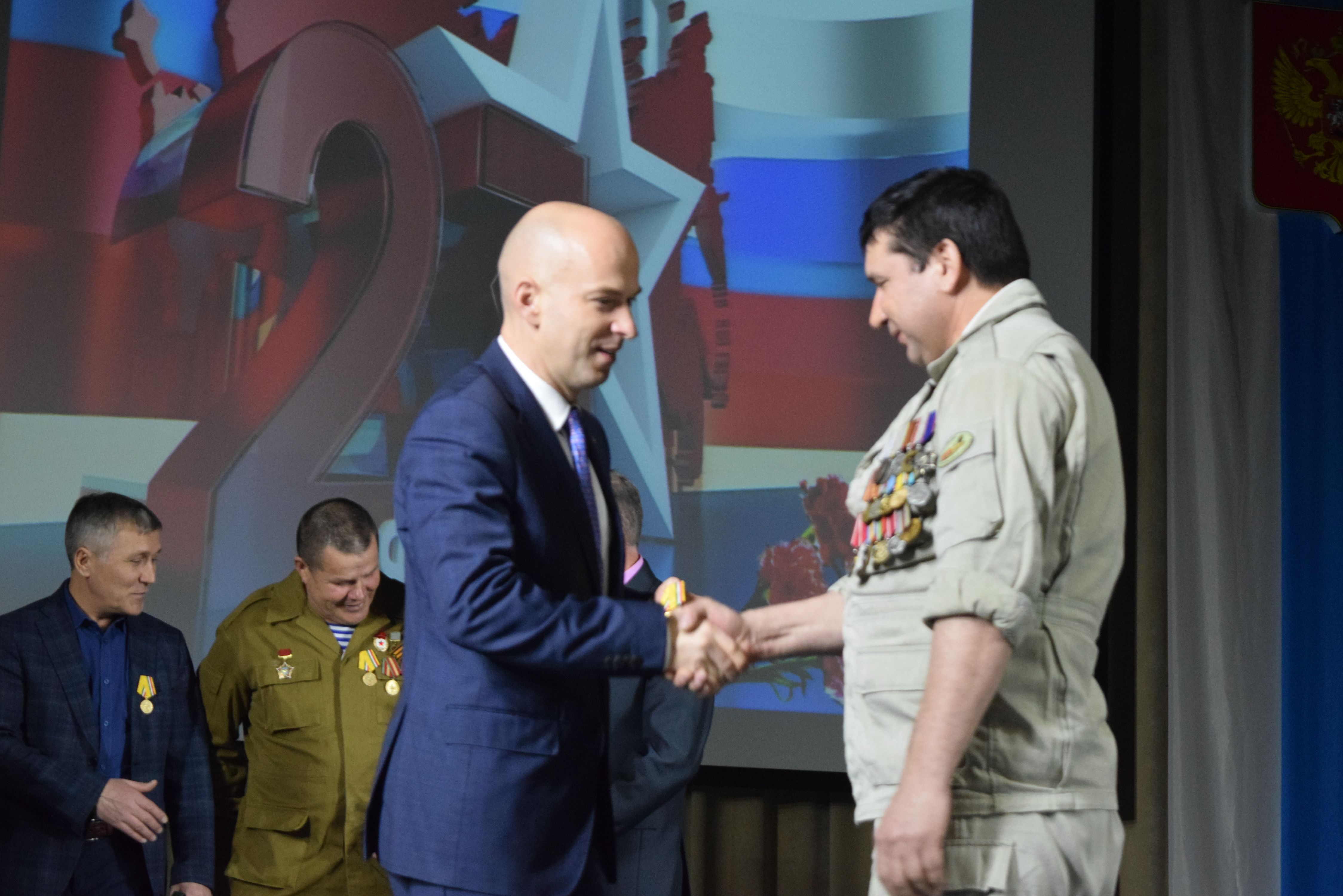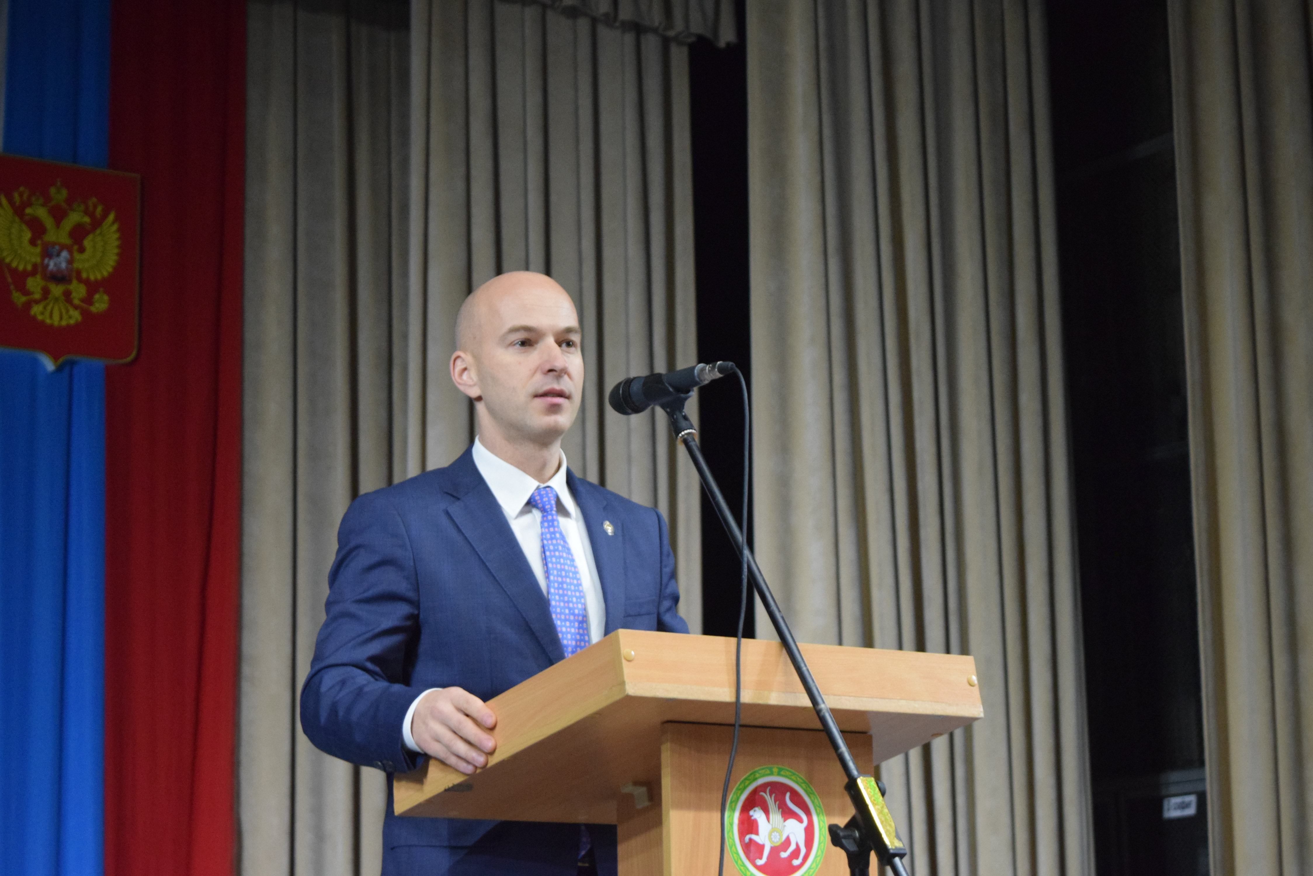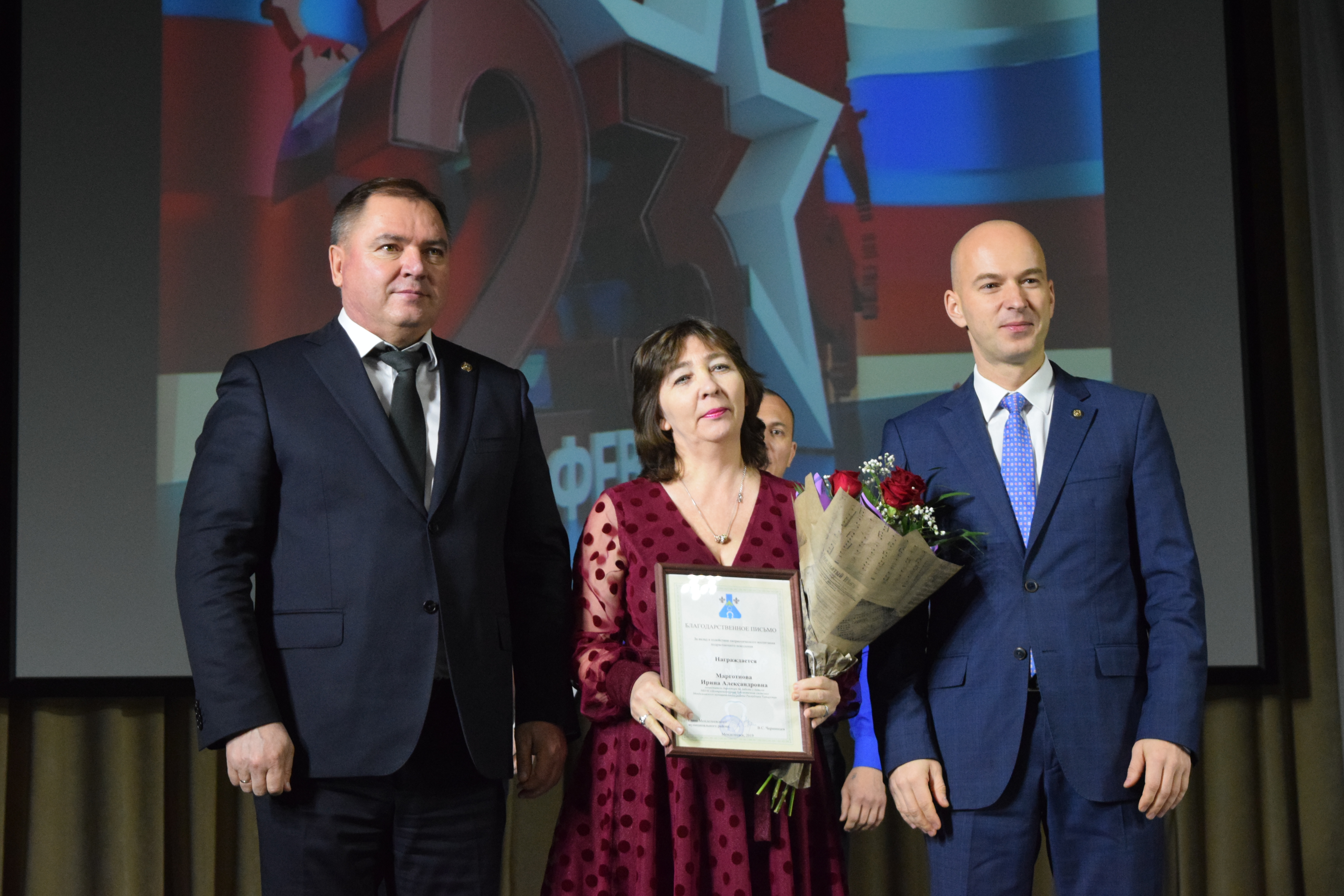 Собравшихся в концертном зале поздравил Валерий Чершинцев, отметив, что менделеевцы всегда служили Родине с честью, на данный момент 83 ребят охраняют рубежи России. Также поздравительные слова выразил председатель Государственного комитета Республики Татарстан по туризму Сергей Иванов.