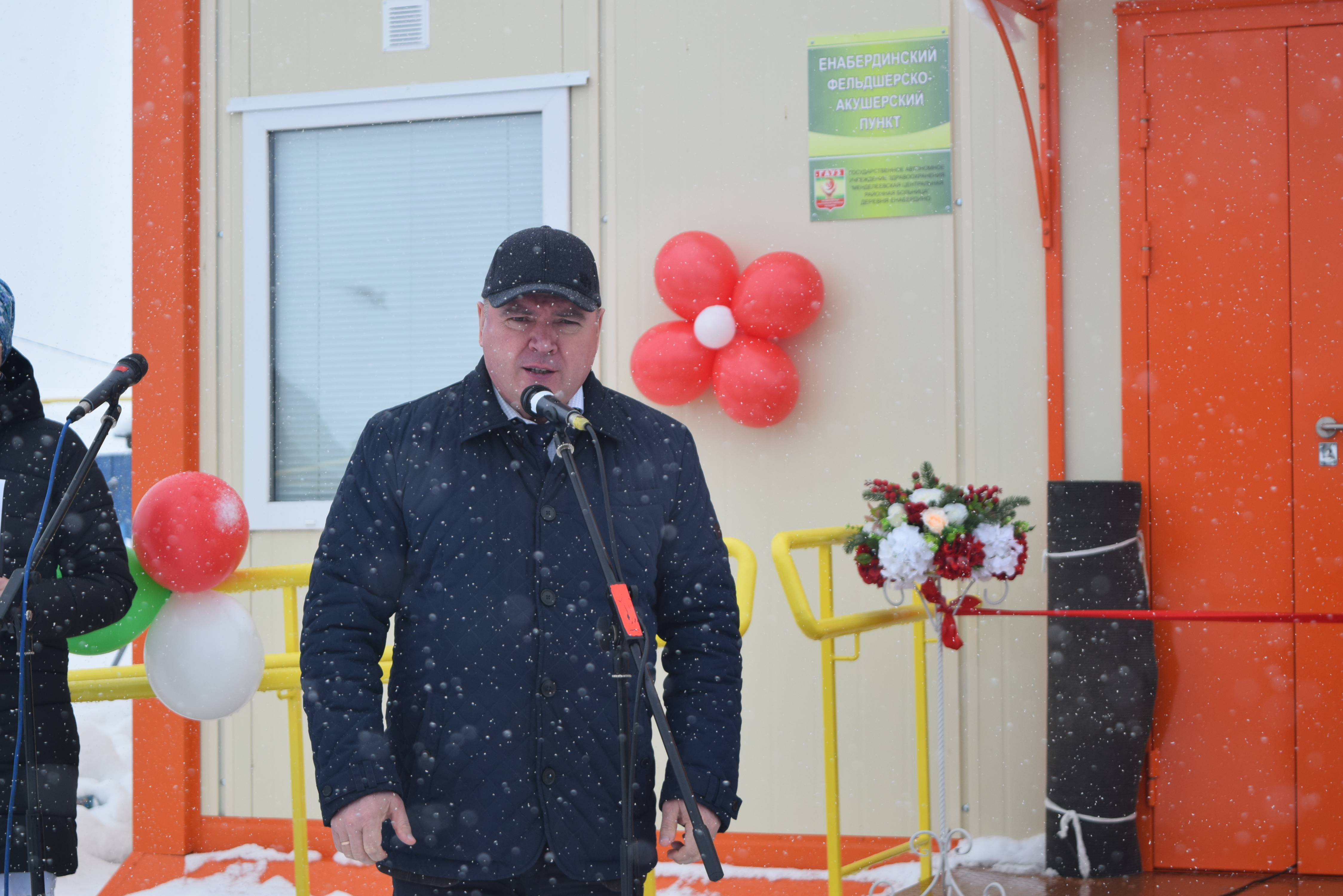 Сегодня состоялось торжественное открытие модульного ФАПа в с.Енабердино. Жителей села поздравил глава района Валерий Чершинцев и выразил надежду, что сельчане будут обращаться сюда чаще за советом, чем за медицинской помощью.Глава сельского поселения Виктор Никифоров выразил слова благодарности в адрес руководства Менделеевского района.