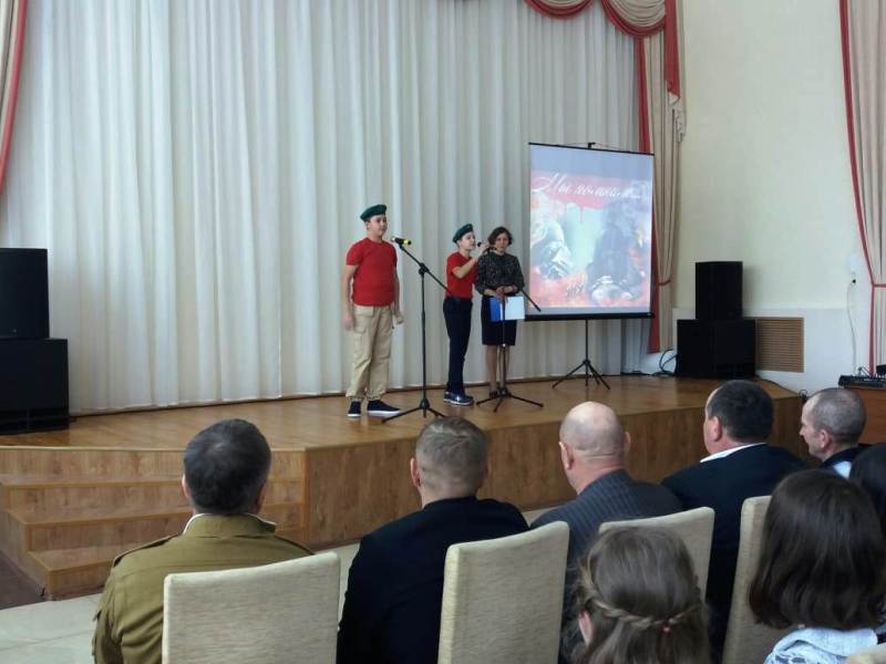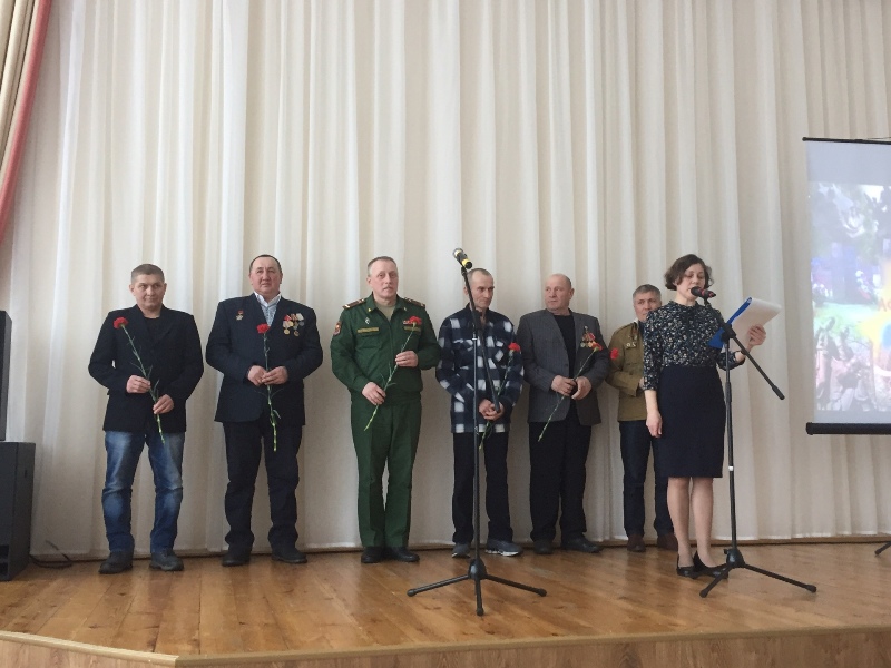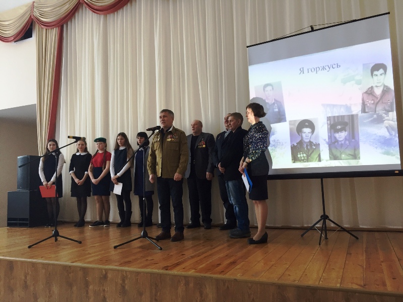На мероприятие были приглашены воины-интернационалисты. Это папы учащихся, о которых они писали. Ученики зачитали небольшие отрывки из сочинения и ведущий библиотекарь пригласила присутствующих пап на сцену. Они в свою очередь сказали ребятам напутственные слова. Подвиги советских солдат и офицеров должны стать примером мужества и героизма для молодежи. Именно для этого был объявлен Республиканский конкурс детского творчества «Афганистан – живая память». Заместитель директора по работе с детьми Марготнова И.А подвела итоги муниципального этапа конкурса и вручила Благодарственное письмо за поддержку в организации конкурса Залуженко С.В. В конце мероприятия библиотекарь Назарова Е.А пригласила всех афганцев на сцену, так как этот праздник не только праздник ребят, но и их праздник. Ребята – юнгвардии подарили ветеранам - афганцам цветы. Вечер-встреча не оставил никого равнодушным, тронул до глубины души.