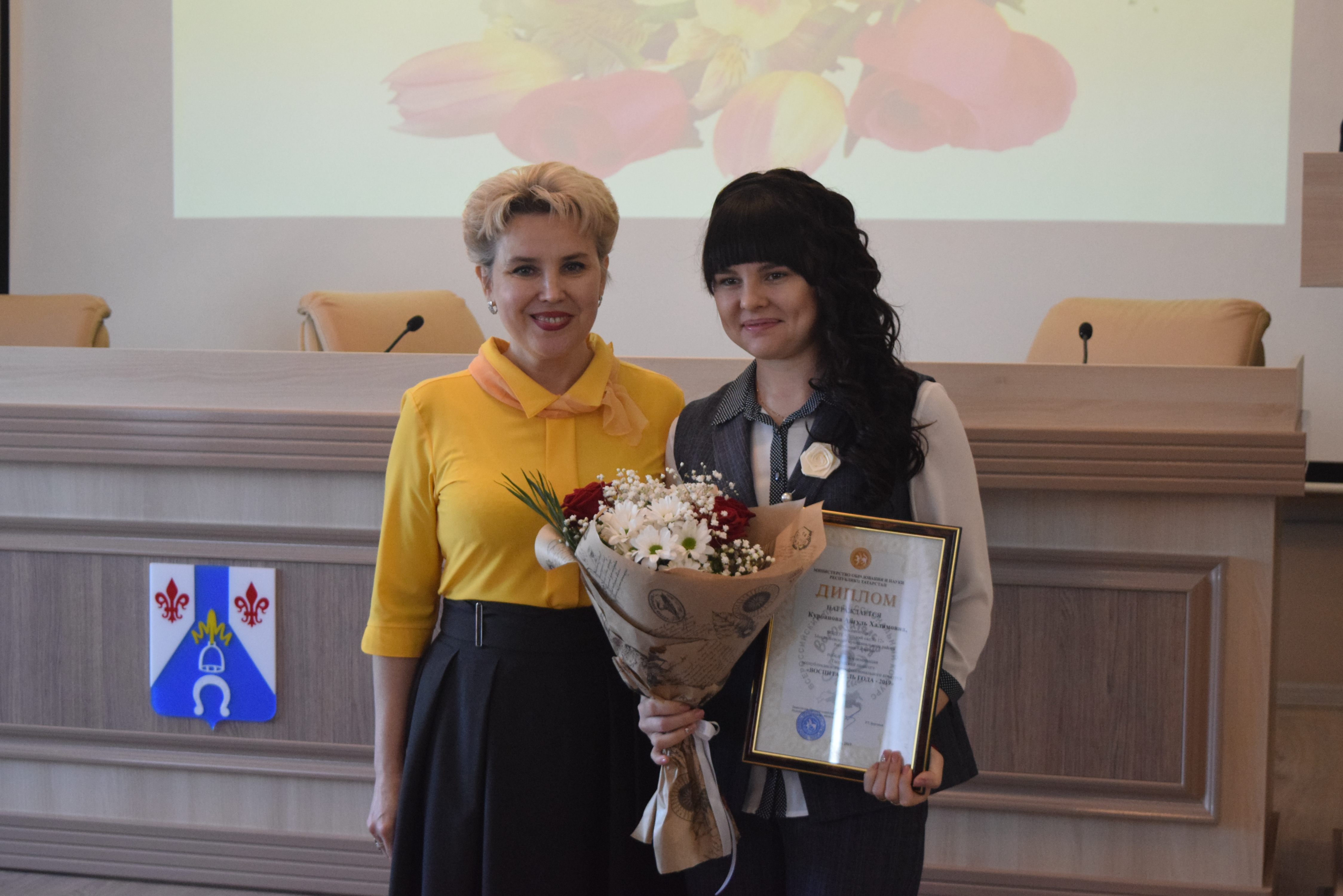 Диплом победителя Республиканского этапа Всероссийского конкурса «Воспитатель России – 2019г» в номинации «Творческий воспитатель» награждается Курбанова Айгуль Халимовна – воспитатель дошкольного образовательного учреждения №12.