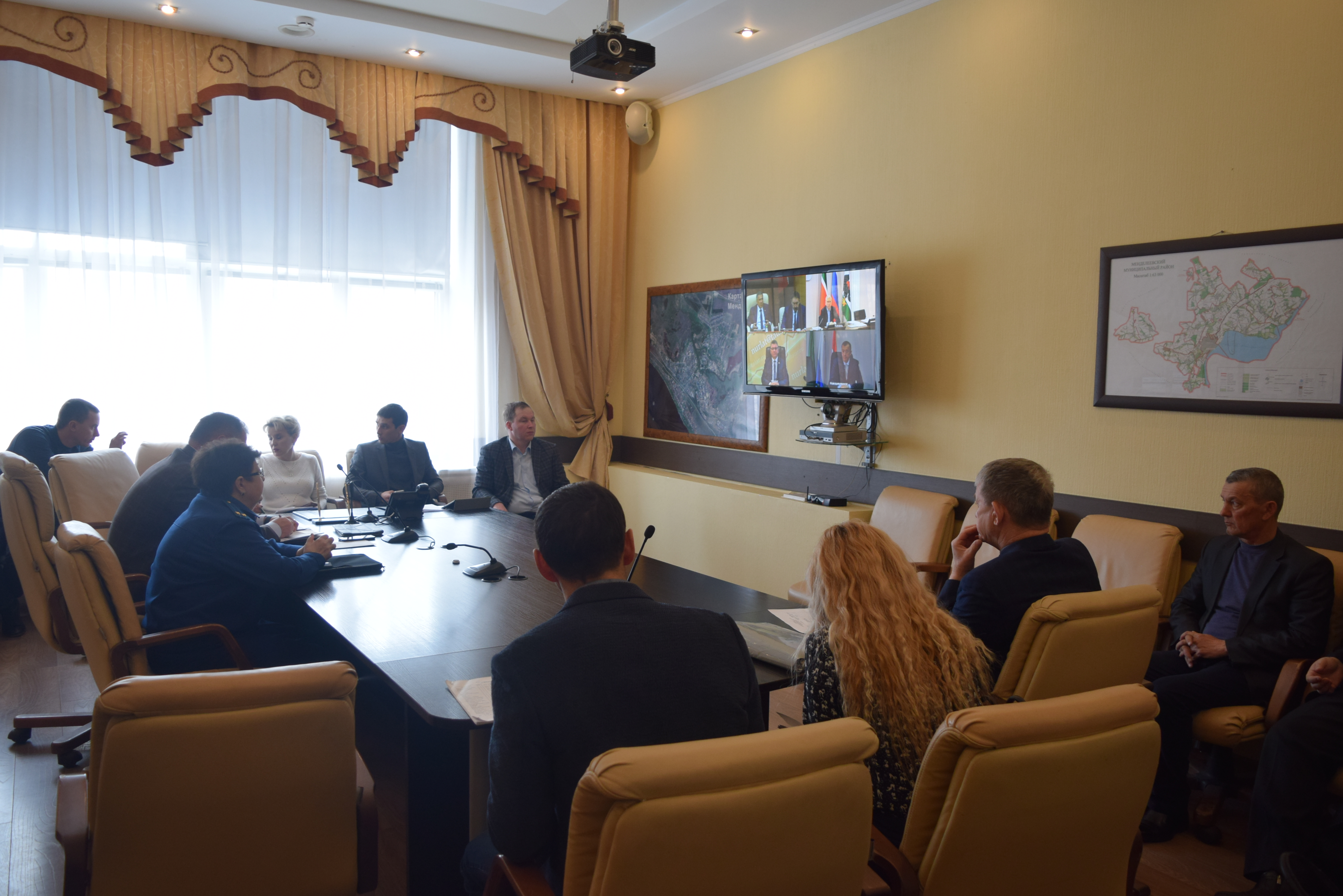 Сегодня глава района Валерий Чершинцев, руководство района приняли участие в республиканском совещании по вопросам о реализации республиканских программ жилищного строительства и строительства объектов социального назначения (детских дошкольных учреждений, фельдшерско-акушерских пунктов, амбулаторий, больниц, клубов, спортивных площадок), завершении строительства проблемных объектов жилищного строительства, осуществляемого гражданами при долевом соинвестировании, о вопросах агропромышленного комплекса в РТ. Видеоконференция проходила под руководством Президента Республики Татарстан Рустама Нургалиевича Минниханова..jpg)
