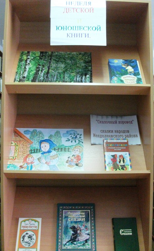 На протяжении всей недели вниманию читателей библиотеки были предложены книжные выставки «В гостях у сказки», «Мультяшка. Книга на экране», «Сказочный хоровод – сказки народов Менделеевского района».