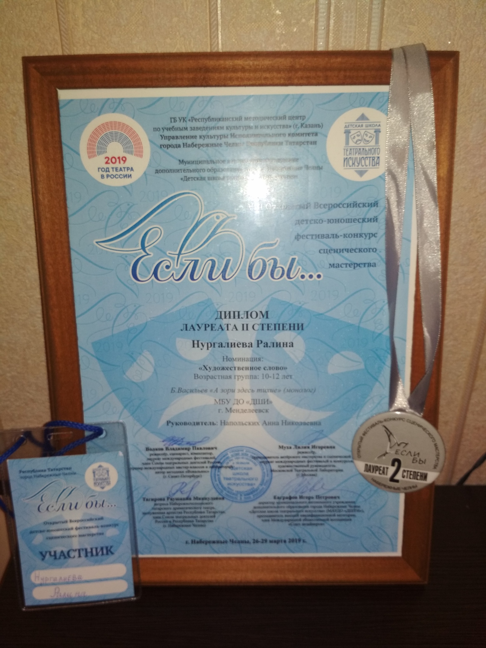 Копилка гимназистки, воспитанницы театрального класса ДШИ Р.Нургалиевой пополнилась дипломом лауреата второй степени.Сообщает сайт Менделеевские новости.