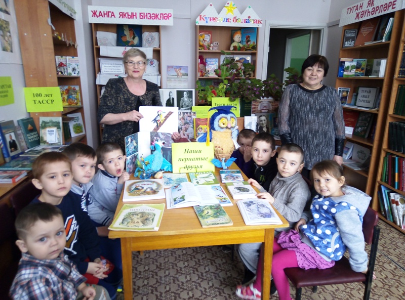 Библиотекарь Байрамгалиева З.М. представила юным читателям книжную выставку «Наши пернатые друзья», рассказала о некоторых представителях пернатой планеты, об интересных моментах из жизни птиц. Дети активно участвовали в тематических конкурсах «Узнай птицу», дружно вспоминали пословицы и поговорки о птицах.
