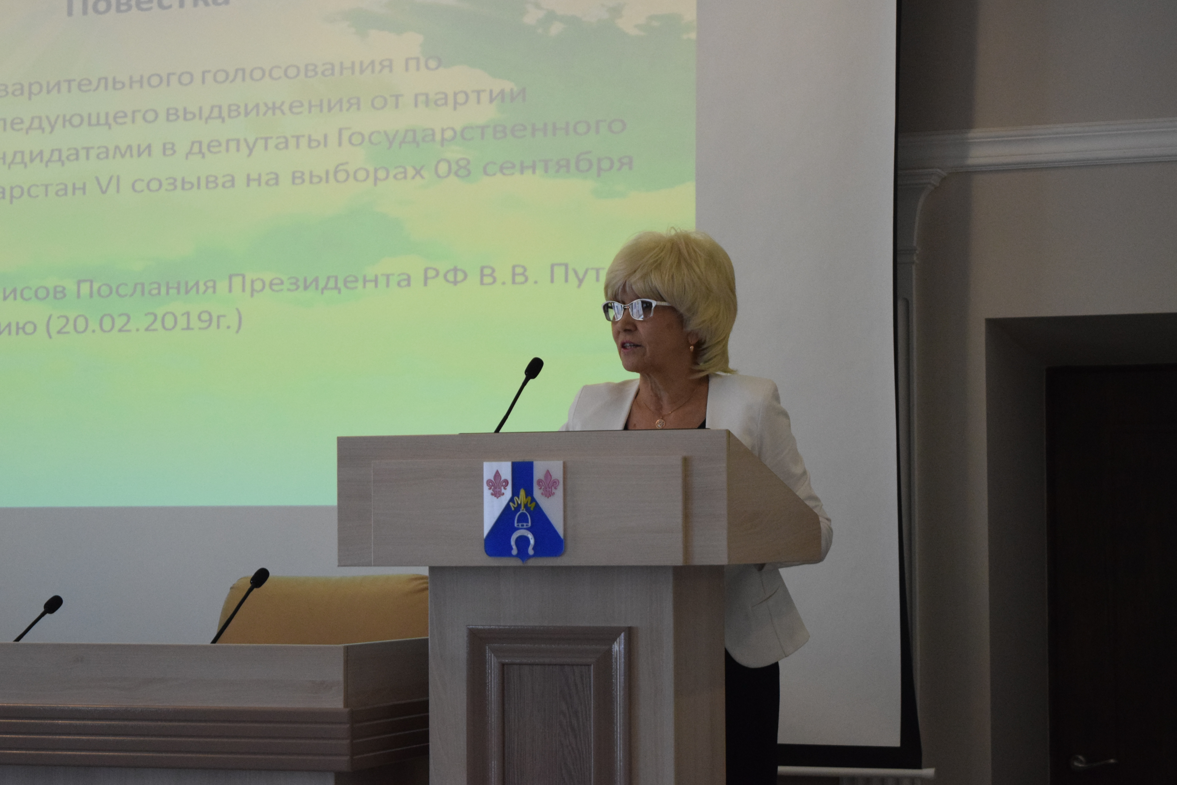 1. О проведении предварительного голосования по кандидатурам для последующего выдвижения от партии "Единая Россия" кандидатами в депутаты Государственного Совета РТ 6 созыва на выборах 08 сентября 2019 года.