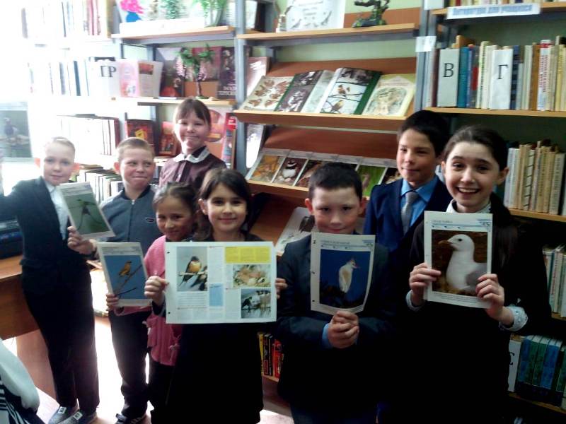 Библиотекарь познакомила учащихся с многообразием птиц, рассказала об огромном значении птиц в природе, интересных фактах о птицах. Ребята участвовали в викторине, узнавали птиц, изображенных на рисунке, изображали их, были подготовлены сообщения о некоторых птицах. В конце мероприятия ребята покормили птиц в кормушках.