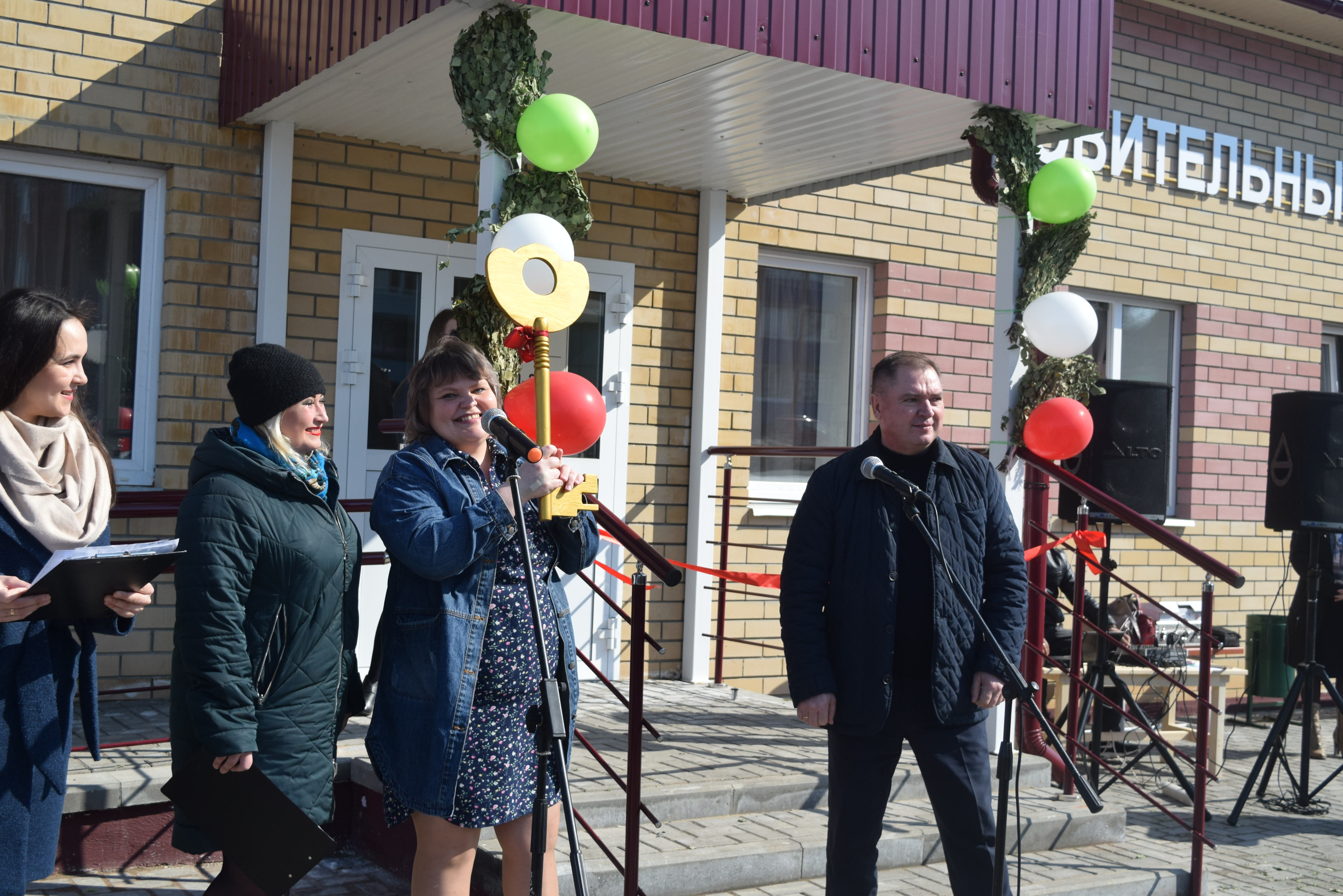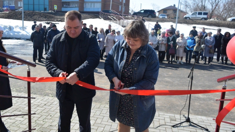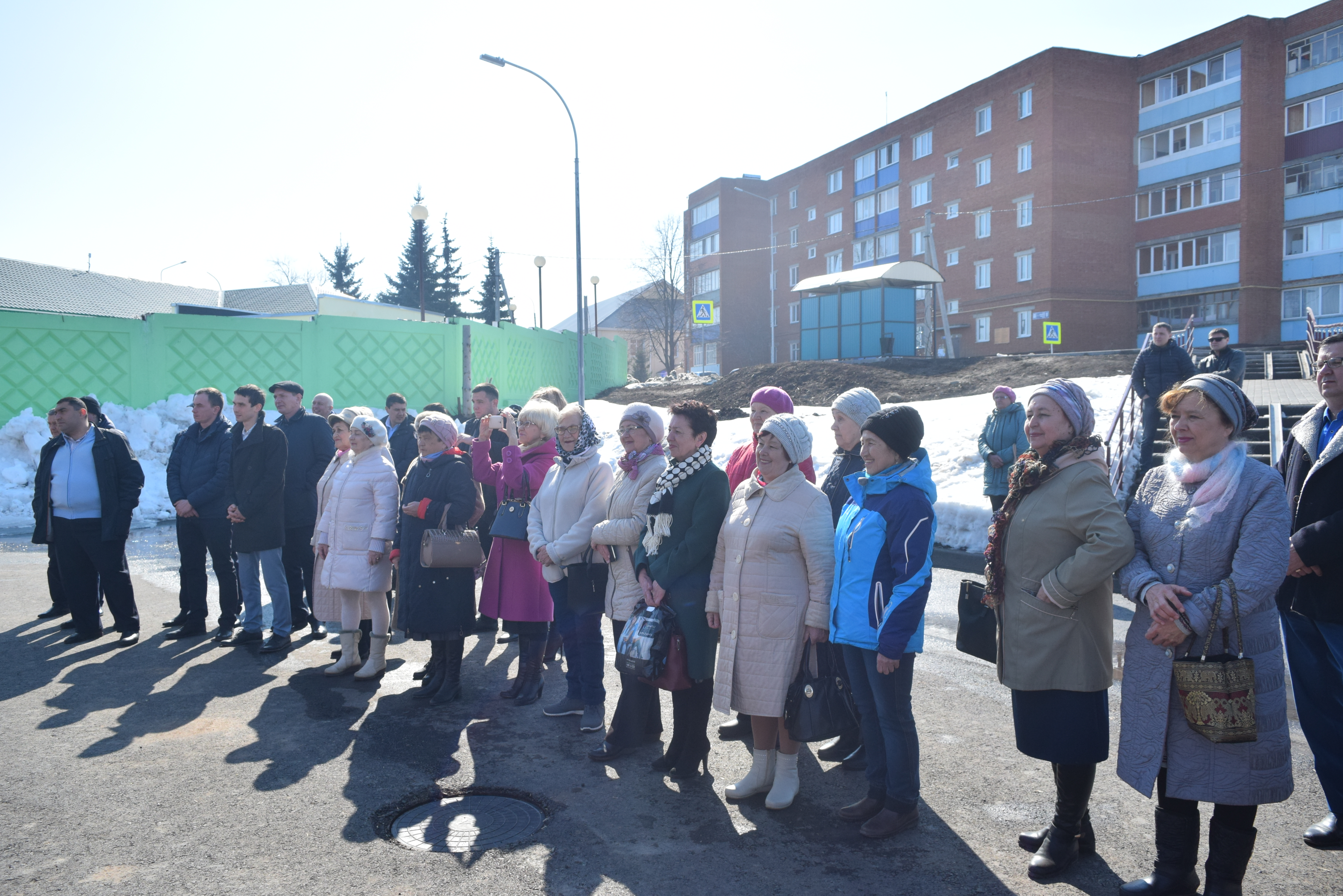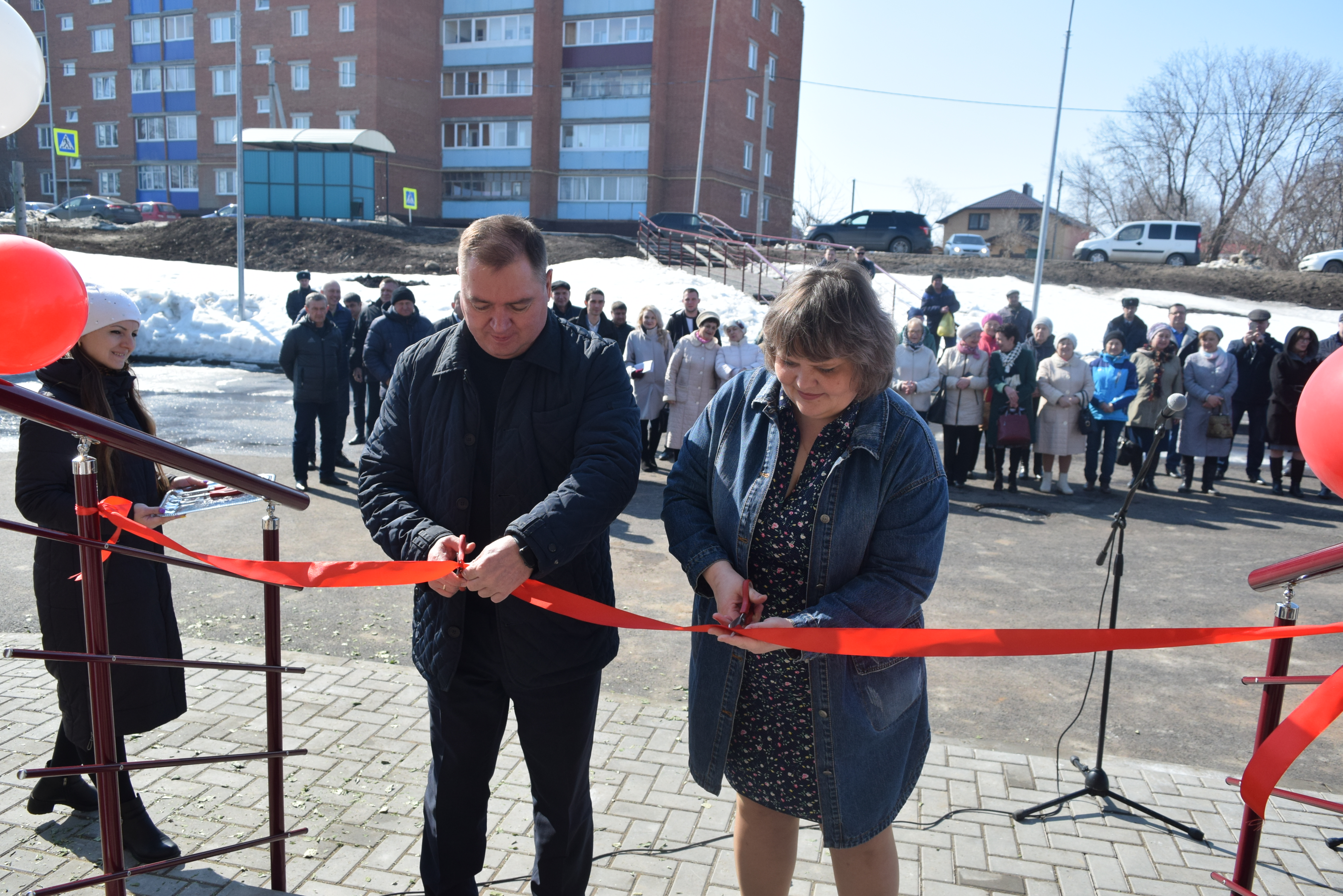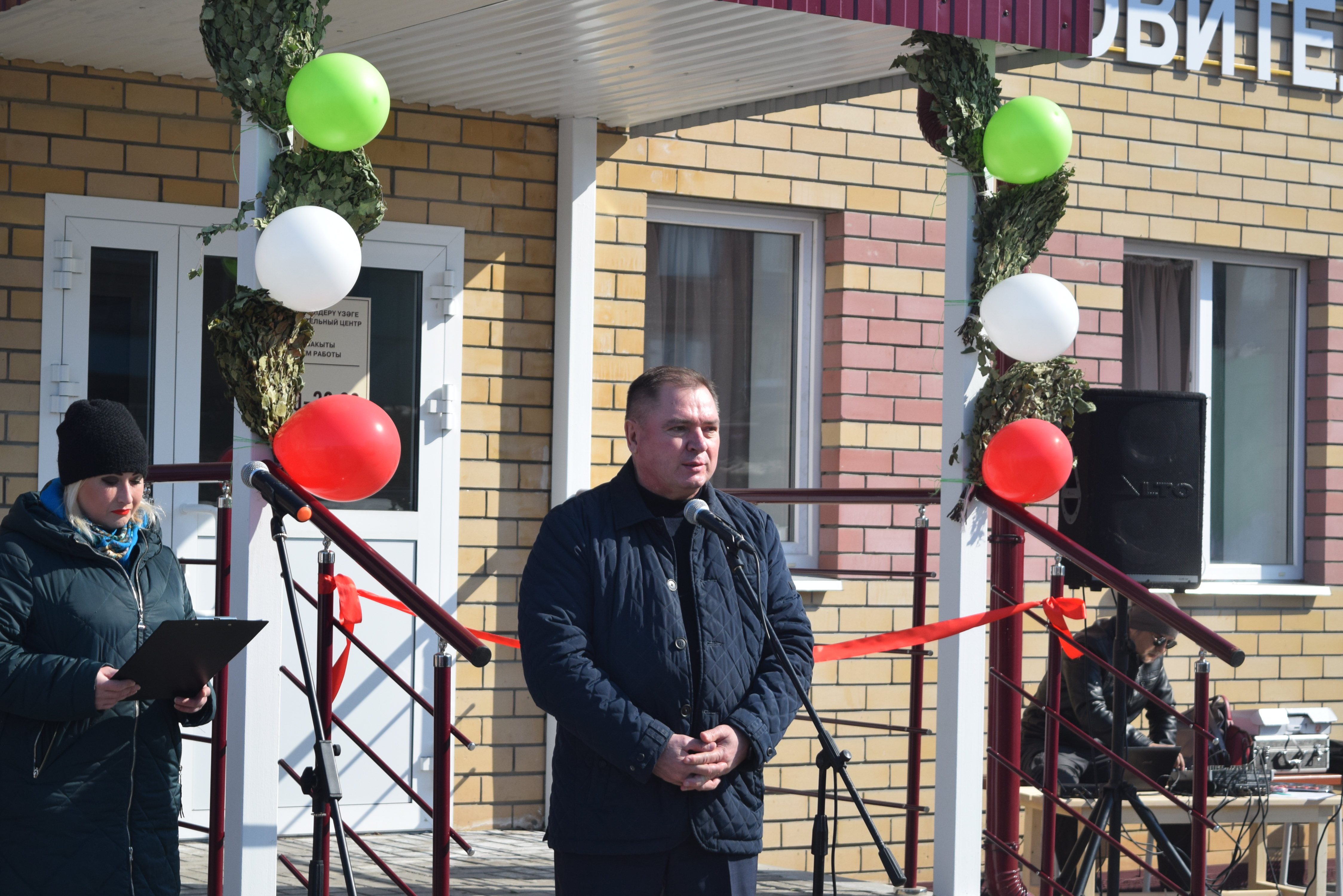 С торжественными словами к жителям обратился Глава района Валерий Чершинцев.Далее,глава района совместно с директором бани Аленой Маштаковой перерезали символическую ленту.