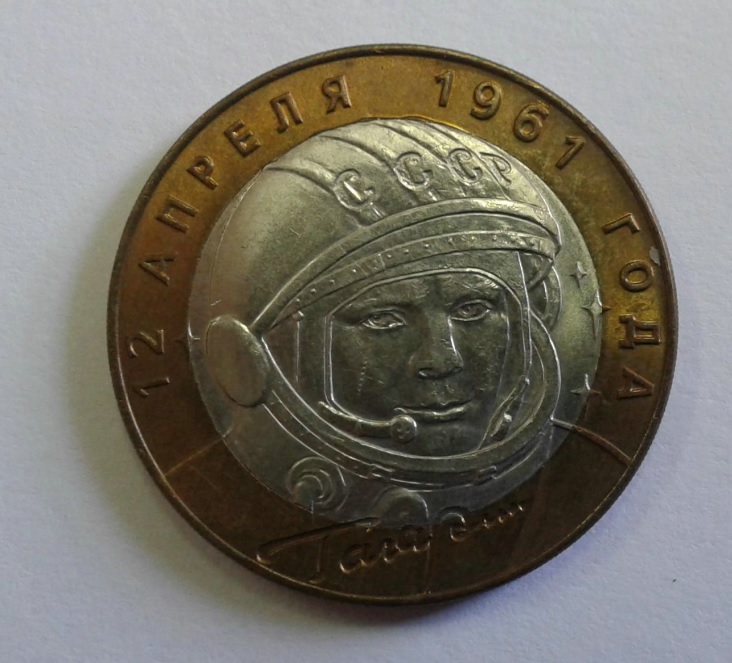 В 2001 году к юбилею первого полета человека в космос Банк России выпустил новую биметаллическую юбилейную монету, на реверсе которой изображен Ю. А. Гагарин. Среди людей, увлекающихся собиранием монет она зовётся просто — «Гагарин».