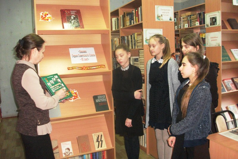 Для школьников была подготовлена презентация и книжная выставка. Ребята узнали об истории учреждения и награждения званием «Герой Советского Союза», о подвиге лётчиков-полярников, спасших жизни 112 человек с дрейфующего парохода «Челюскин» в Беринговом проливе, которые одними из первых получили данную весомую награду. Подавляющее число Героев Советского Союза появилось в период Великой Отечественной войны: 92% от общего числа награждённых лиц. В их числе и наши земляки. Навечно вписали себя в героическую летопись страны и воины, выполнявшие интернациональный долг в Демократической Республике Афганистан. Всего за годы войны в Афганистане высокого звания Героя Советского Союза были удостоены 86 военнослужащих.