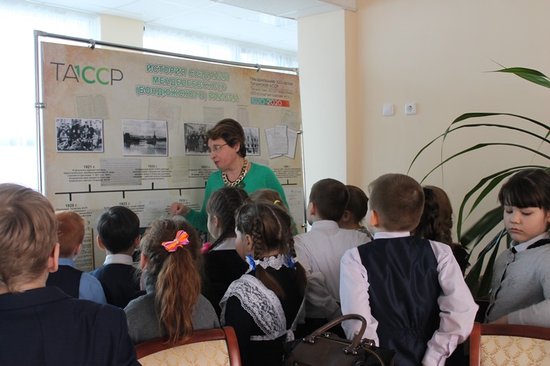 16 апреля в Доме Дружбы народов для учащихся 1 «В» класса СОШ № 1 (рук. Мухамадеева Т.В.) в рамках реализации плана мероприятий по подготовке и проведению празднования 100-летия образования ТАССР была проведена беседа с использованием тематических стендов.