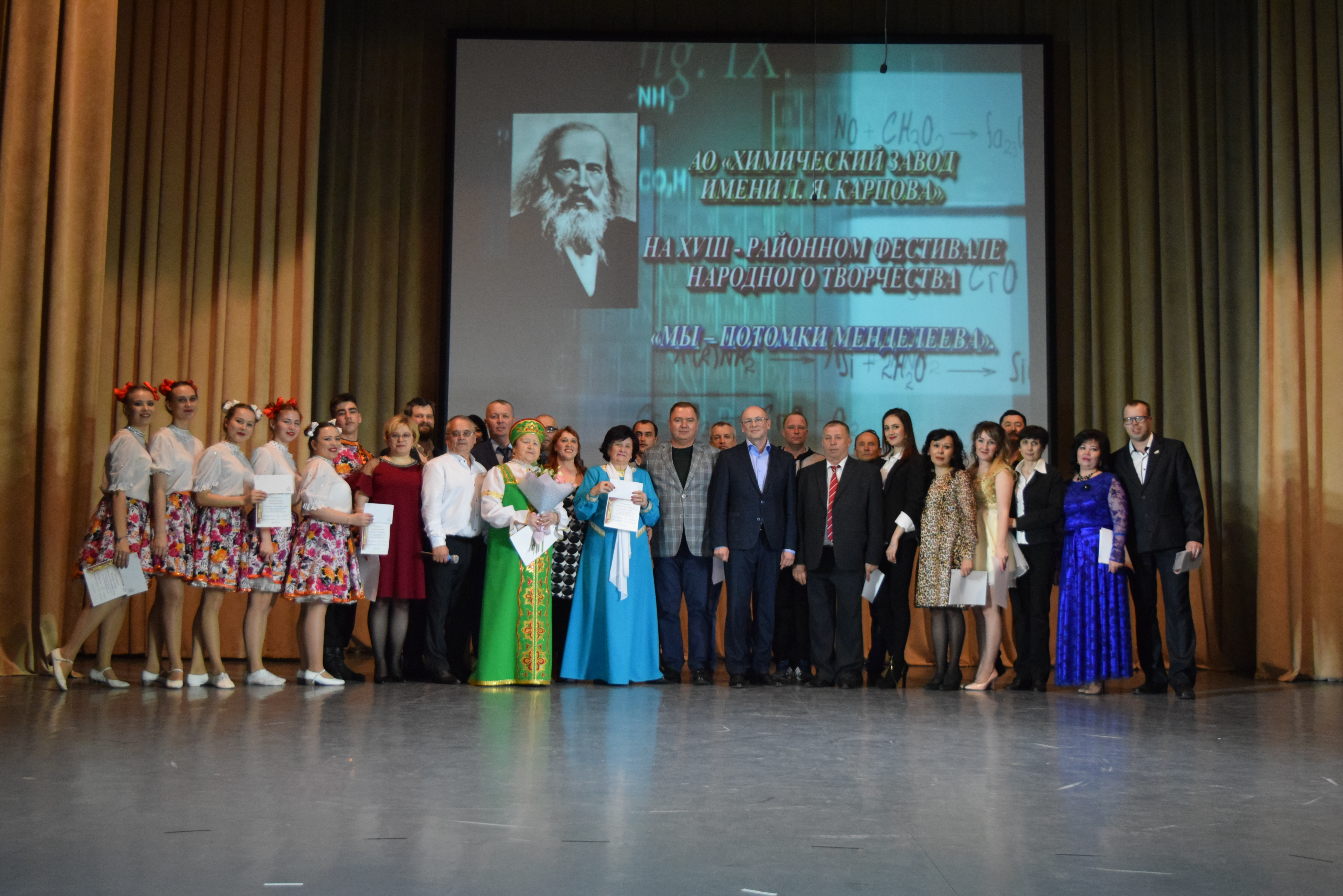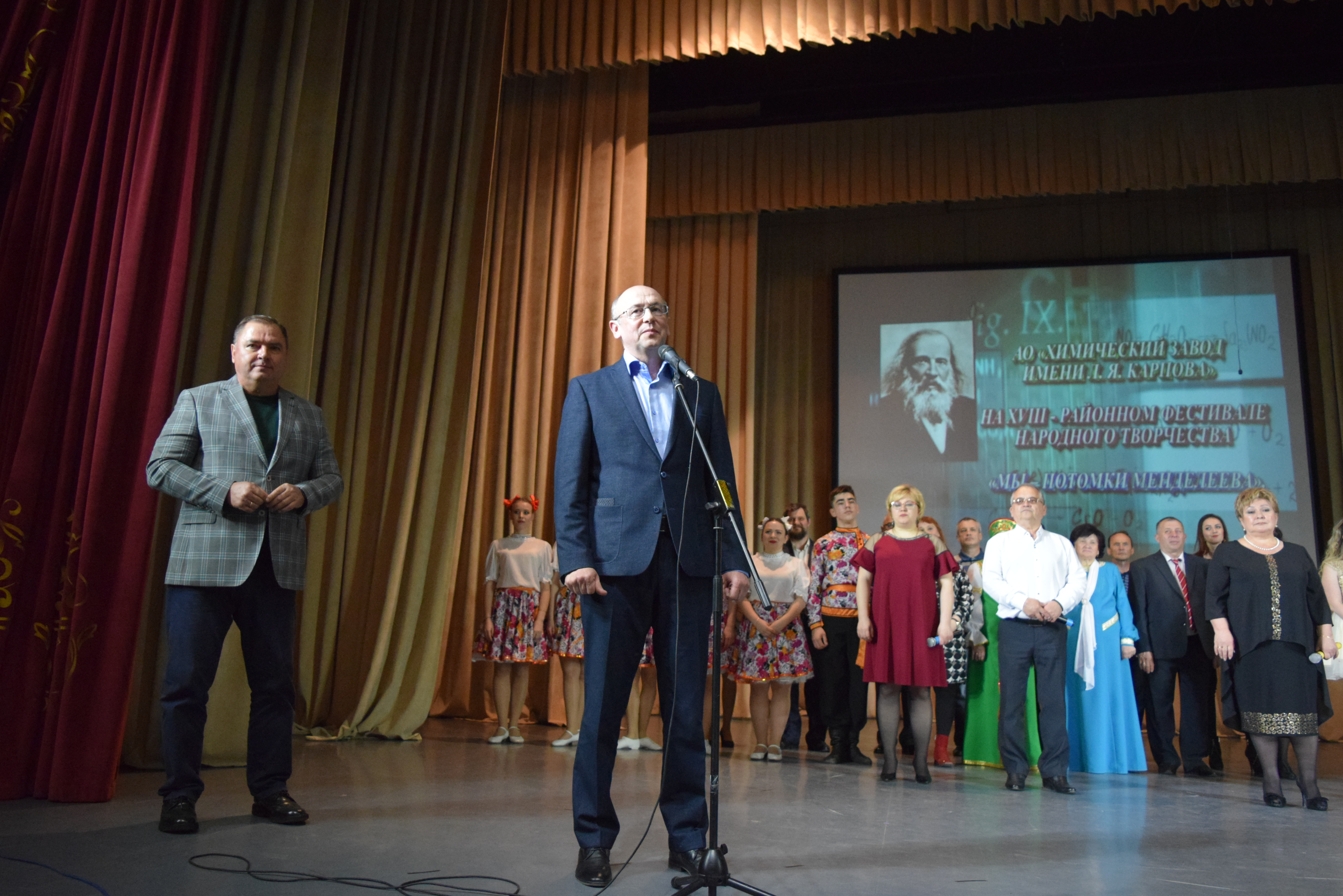 На сцене ДК имени С. Гассара в рамках фестиваля народного творчества «Мы — потомки Менделеева» состоялся концерт с участием творческого, активного, трудового коллектива химического завода имени Л. Я. Карпова